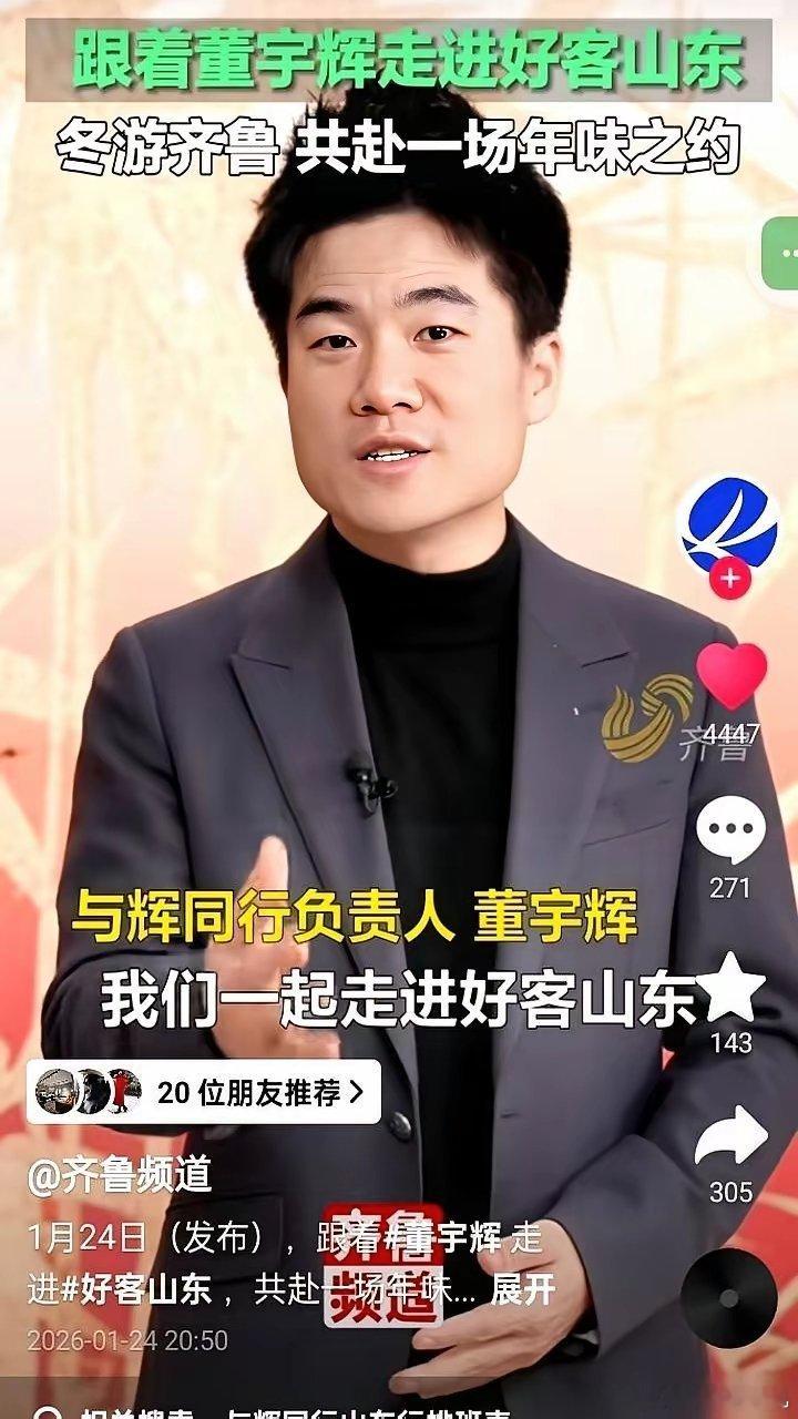 本来以为,董宇辉收到山东的邀请,就是文旅部门常规操作,客气一下。谁知道,一夜之间,整个山东的媒体矩阵,全被调动起来了。不是一家两家。是所有。省台、市台、地方报纸,连带着那些新媒体账号,齐刷刷地发出同一个视频邀请。你点开一个APP,是董宇辉的脸。换一个频道,还是他的视频。办公室的群里,朋友圈里,全是那张红底金字的邀请函。这阵仗,就像你本来只是想找个人问个路,结果对方二话不说,直接调来了一个整编师,拿着地图、端着茶水、敲锣打鼓地给你带路,隆重到让你手都不知道该往哪儿放。这已经不是“好客山东”四个字能解释的了。这是直接把“全省的排面”,结结实实地砸在了董宇辉面前。