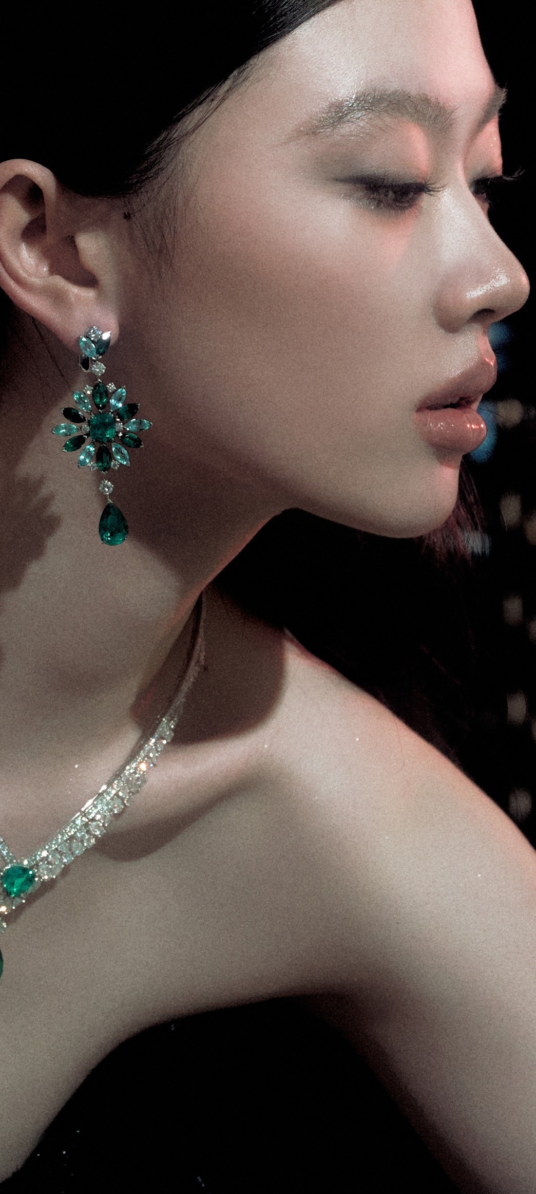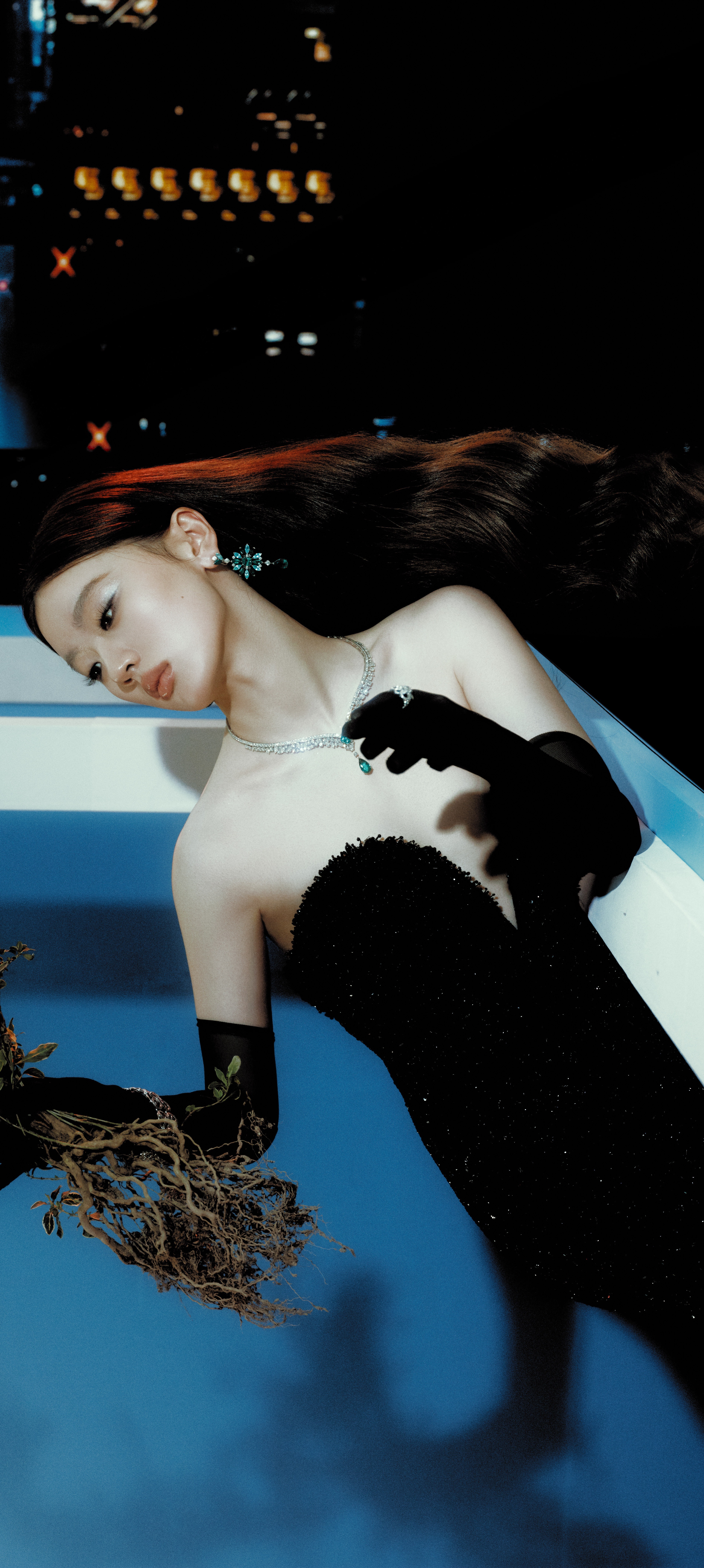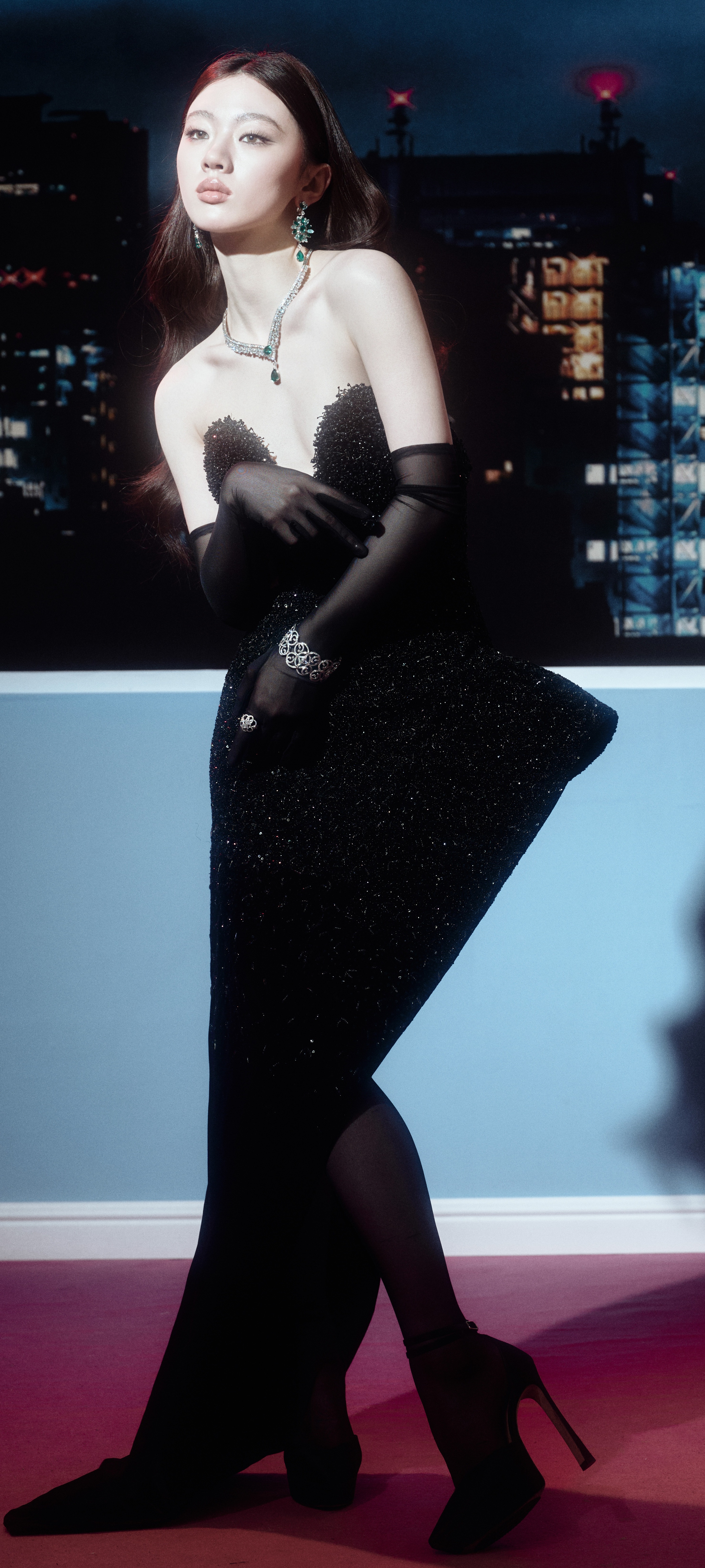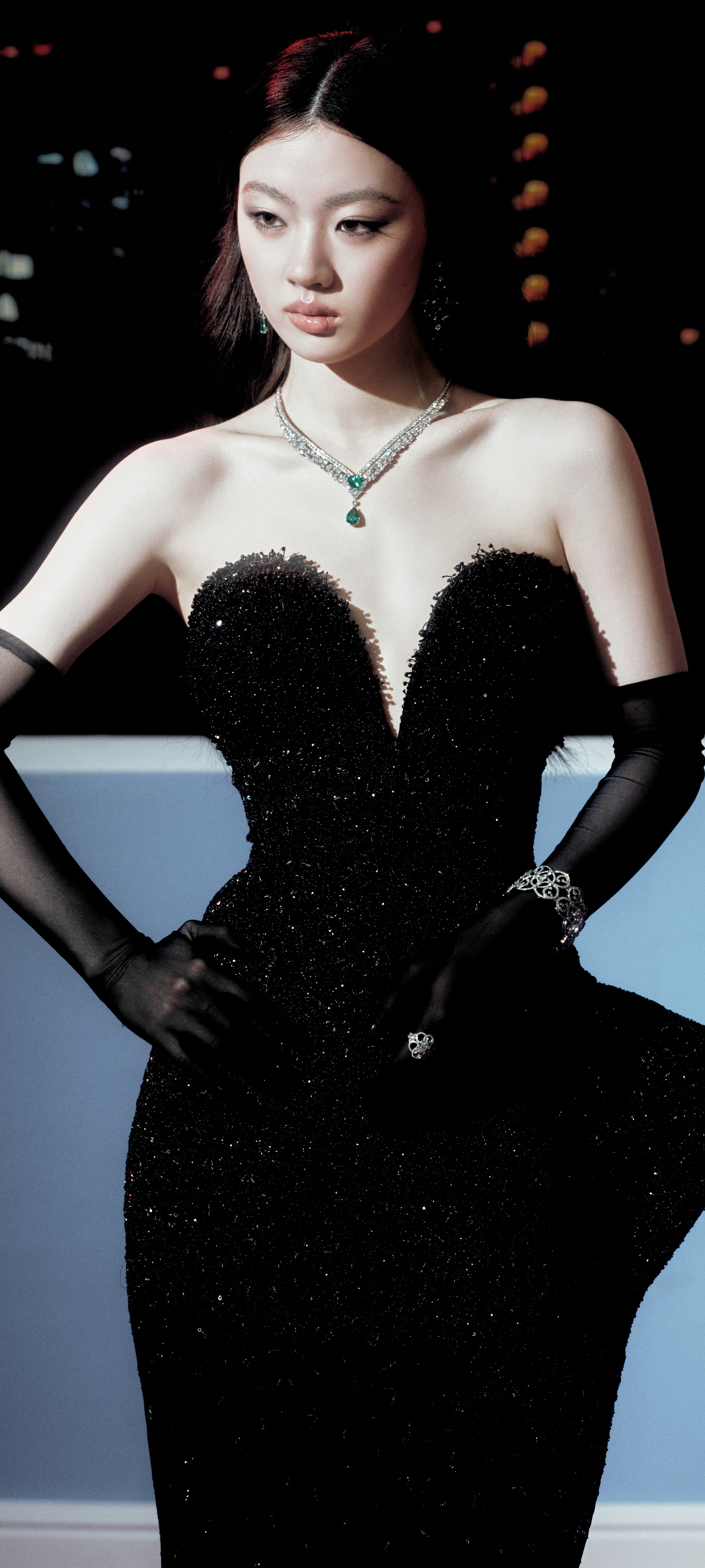 单依纯浓颜暗黑风壁纸,抹胸黑裙丝袜点缀,清冷酷美感满满。单依纯