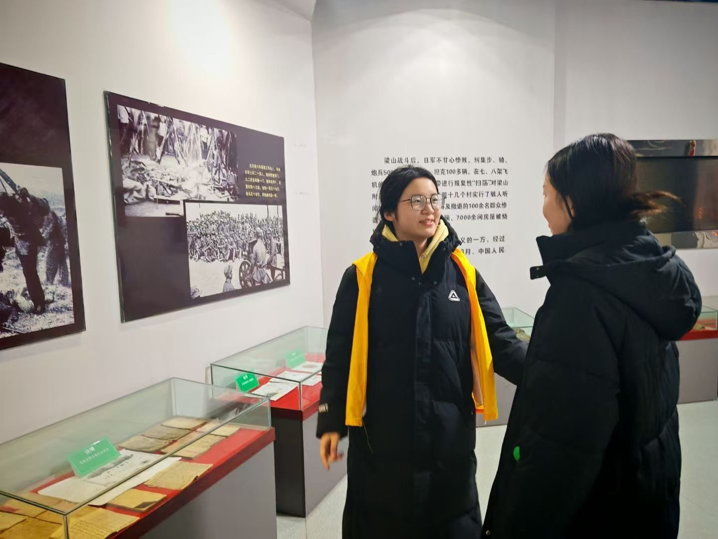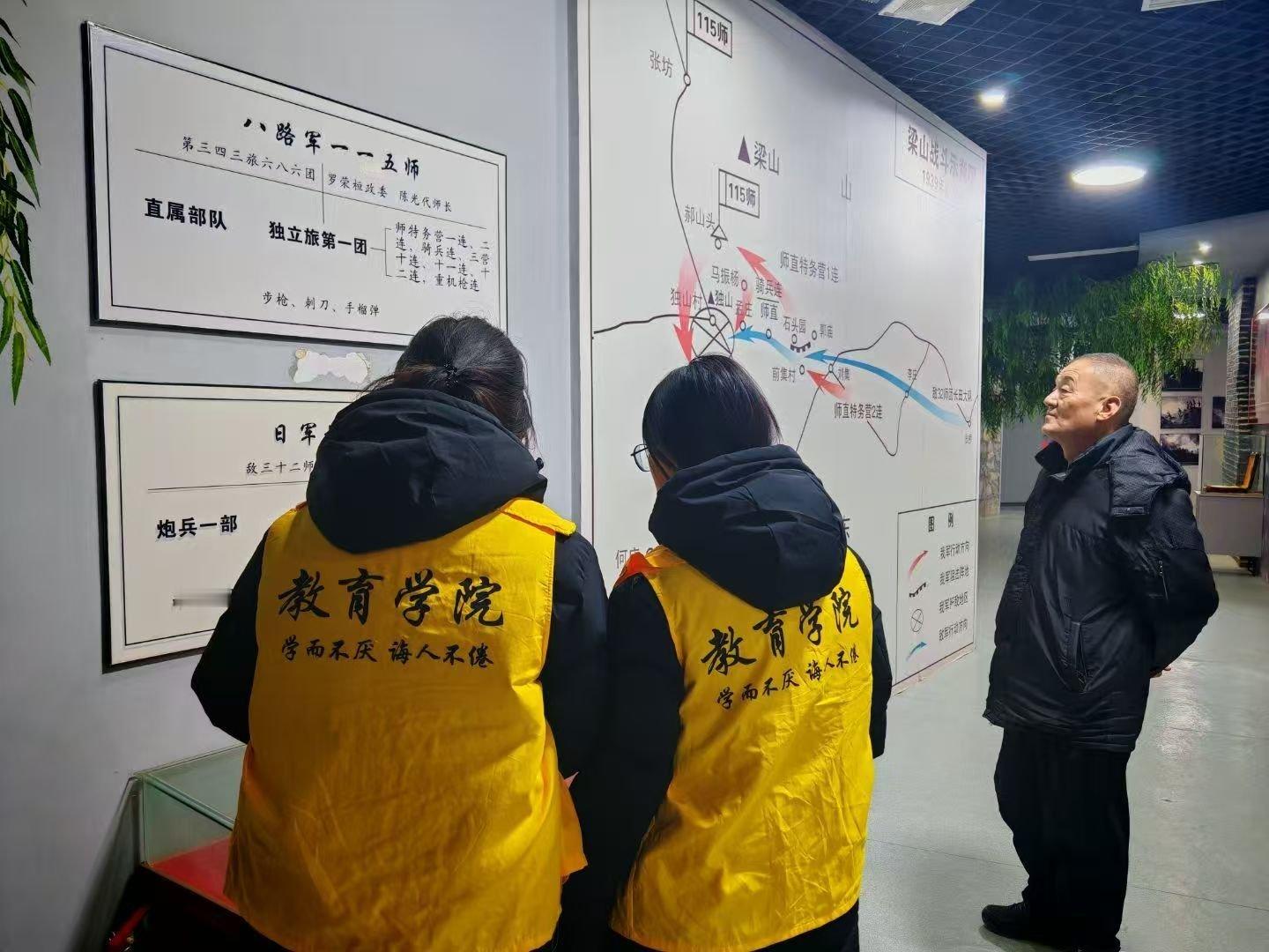 秦岭笑谈 【青衿寻红迹,薪火照征程】寒假社会实践曲阜师范大学青春三下乡 2026年1月16日,曲阜师范大学“黄河承赤脉,青衿续薪火”社会实践队走进梁山抗日纪念馆,开展红色研学实践。队员们穿梭展厅,端详抗战大刀、步枪等实物展品,研读梁山战斗作战地图与史料照片,重温八路军115师以少胜多的辉煌战史,感悟军民同心抗敌的磅礴力量。作为未来的教育工作者,队员们将铭记峥嵘岁月,把红色基因融入育人使命,以青春之力赓续黄河精神与抗战薪火。投稿人