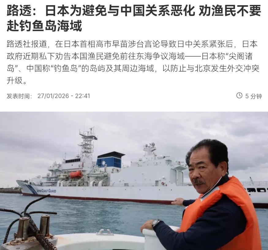 日本害怕了!在钓鱼岛问题上往后撤了!路透社 1 月 28 日消息,日本政府立场明显转变,多年默许渔民去钓鱼岛海域捕鱼,如今高市早苗上台、中日关系恶化后,多名日本官员私下劝渔民别去了,这剧情跟宫廷剧里的胆小鬼认怂一样,太有戏剧性了! 乍一看,这就像一场国际政治的拔河比赛,日本在钓鱼岛问题上一直想使劲拽绳子,现在却突然松手了。在大国博弈的舞台上,日本这一退缩显得格外滑稽。 说实话,日本之前默许渔民去钓鱼岛海域捕鱼,可能是想通过这种方式来宣示所谓的 “主权”,为自己的非法主张找借口,但本质上就是在挑衅中国,为了那点不切实际的野心,不顾地区和平稳定。 而要是日本一直这么嚣张下去,就好比一个小混混在别人家门口撒野。对日本某些政客来说,可能觉得自己很有 “面子”,但对地区和平来说,那就是一颗定时炸弹。会加剧中日之间的紧张关系,甚至可能引发军事冲突,让东亚地区陷入动荡。 与此同时,这对普通日本民众来说,也没什么好处,紧张的国际关系会影响日本的经济发展,贸易会受到阻碍,物价可能上涨,普通人的生活成本会增加,生活质量也会下降。 要清楚,历史上日本在领土问题上的野心曾引发过战争。比如二战时期,日本的侵略扩张给亚洲各国带来了巨大灾难。如今在钓鱼岛问题上的挑衅,要是不收敛,很可能会再次引发冲突,让日本重蹈覆辙。 说真的,未来可能有两种情况:一种是日本能认清现实,彻底放弃在钓鱼岛的非法主张,与中国和平共处,共同维护地区稳定;另一种就是日本又突然反悔,继续挑衅,导致中日关系再次恶化。但我觉得,中国不会轻易妥协,会坚决捍卫自己的领土主权。 说到底,这就是一场正义与非正义的较量。中国对钓鱼岛拥有无可争辩的主权,正义必将战胜日本的野心。中国人民会坚定地守护自己的领土。 以上是小编个人看法,如果您也认同,麻烦点赞支持!有更好的见解也欢迎在评论区留言,方便大家一同探讨。