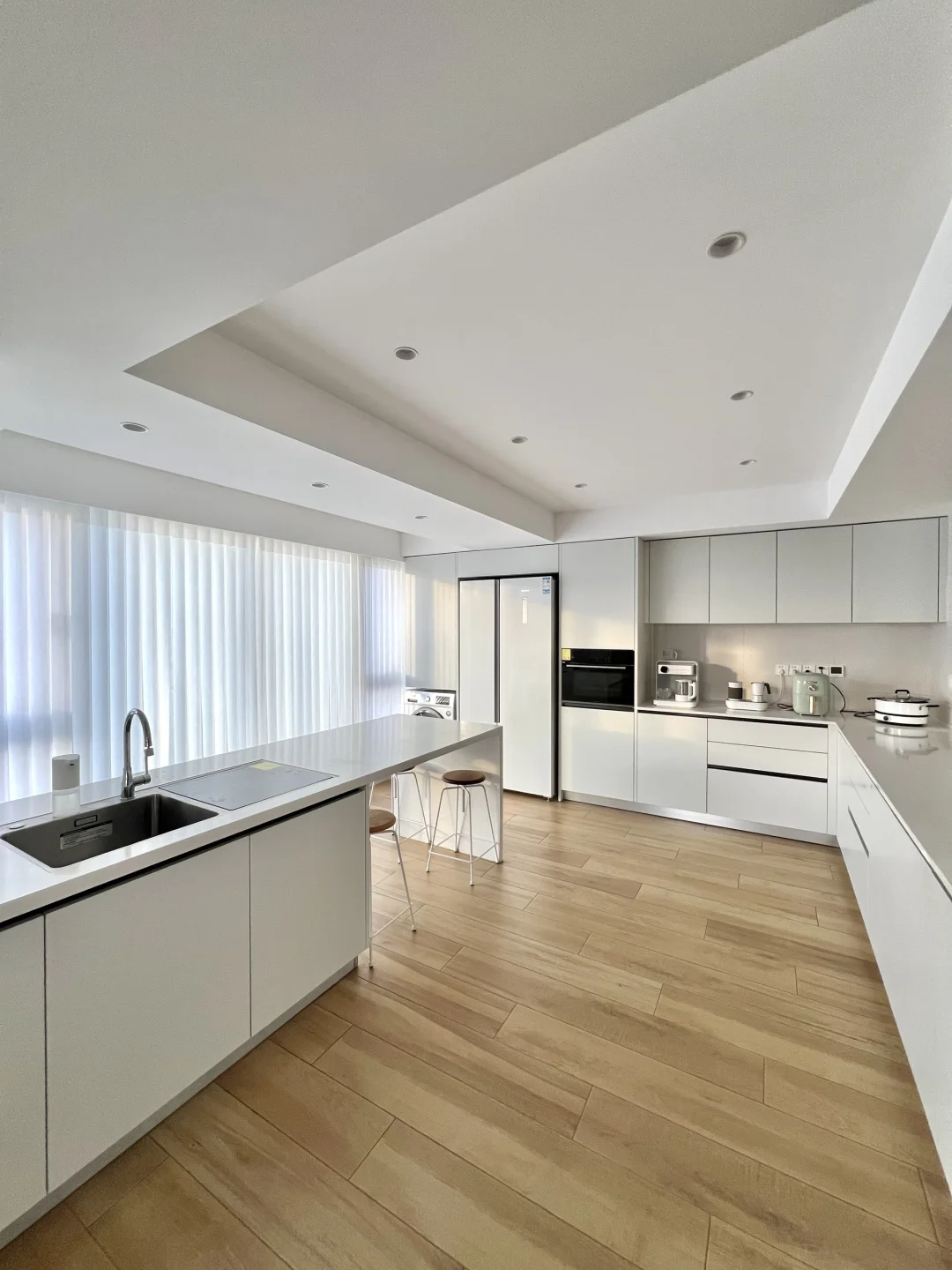 ✔白墙白色橱柜白色窗帘