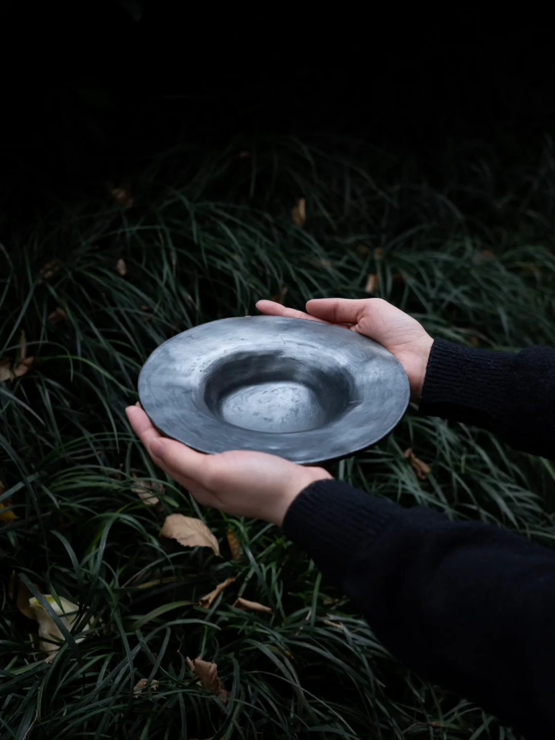 黑陶泥经反复揉压,手工拉坯拉出草帽似的宽檐,釉面保留了陶土的颗粒感,没有过度打磨的光滑,只有手作的 “痕迹”。