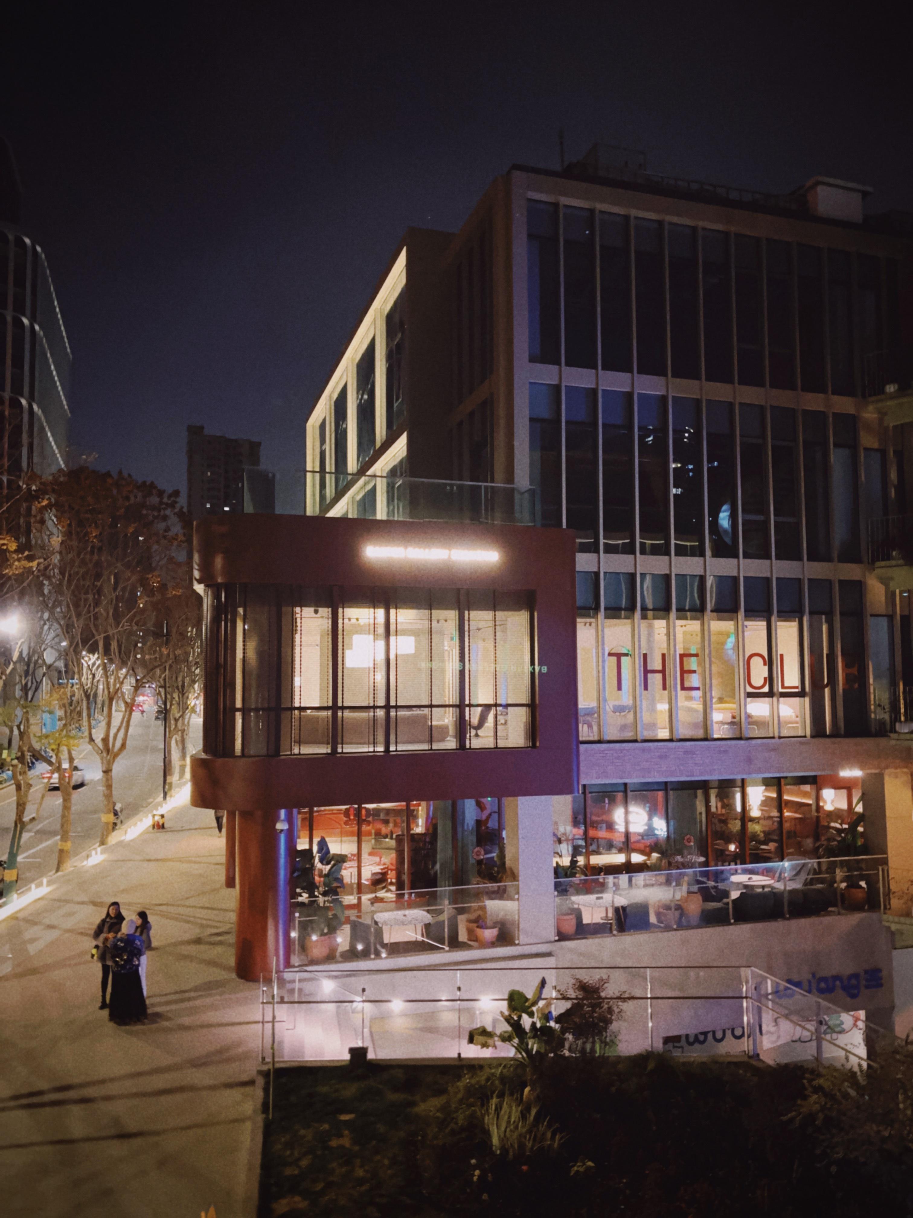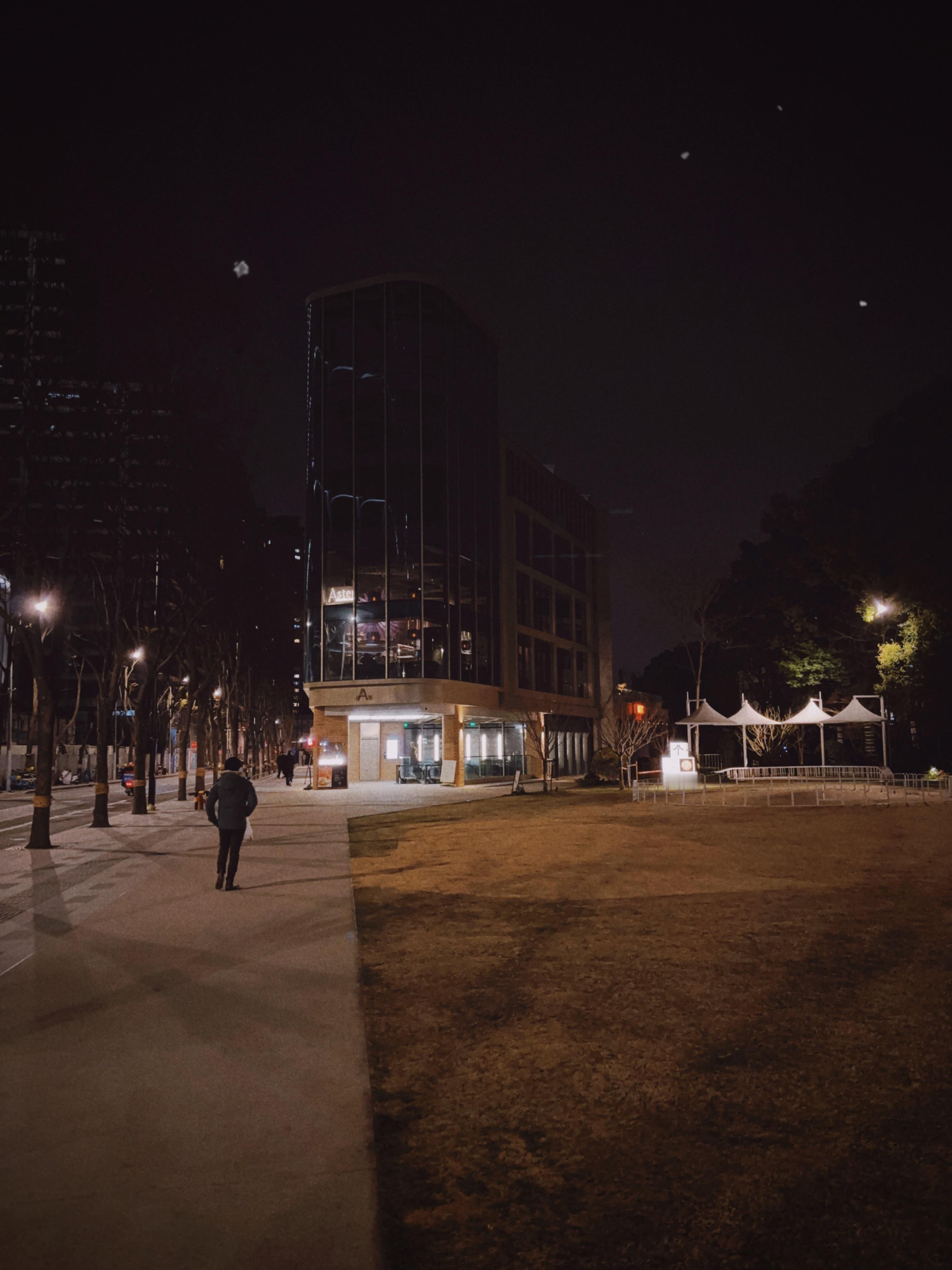 酒店附近有个公园,公园两侧好多酒吧,楼下有充电,尽头是酒店。好地方,好地方,就是有点冷,这会儿有点冷。