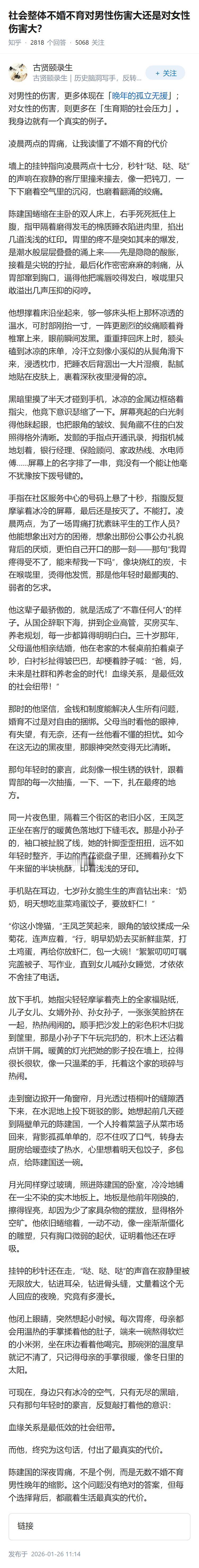 社会整体不婚不育对男性伤害大还是对女性伤害大?