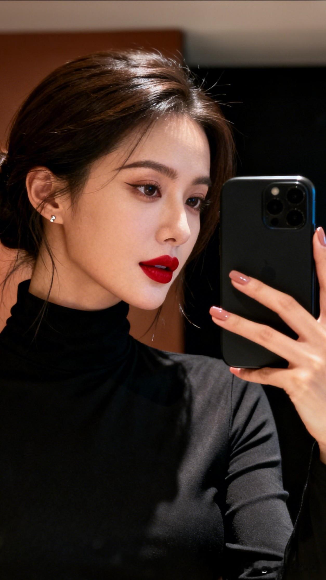 红唇黑衣,镜中自拍的魅力时刻💄✨生活里不经意被惊艳的瞬间