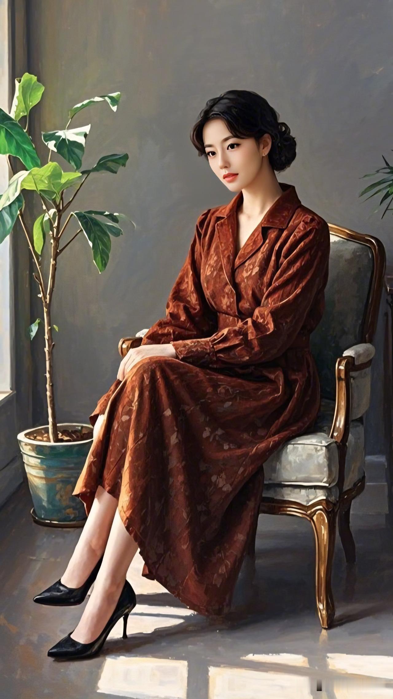 优雅复古风,红棕色的长裙与高跟鞋,尽显女性魅力。氛围感出片穿搭