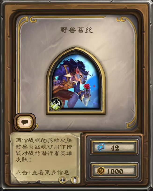 炉石传说1000金币的野兽苔丝皮肤,当对面15血以下会变身成钻石苔丝!不知道这