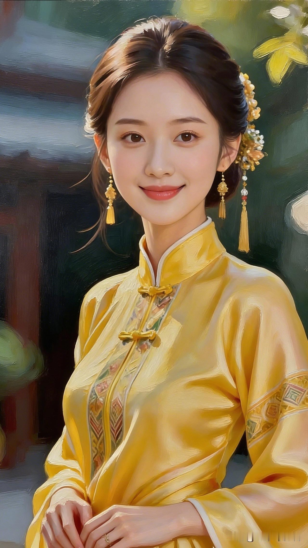古典美女,黄衣华贵,笑靥如花,古风韵味十足。一个女人的外貌重要吗