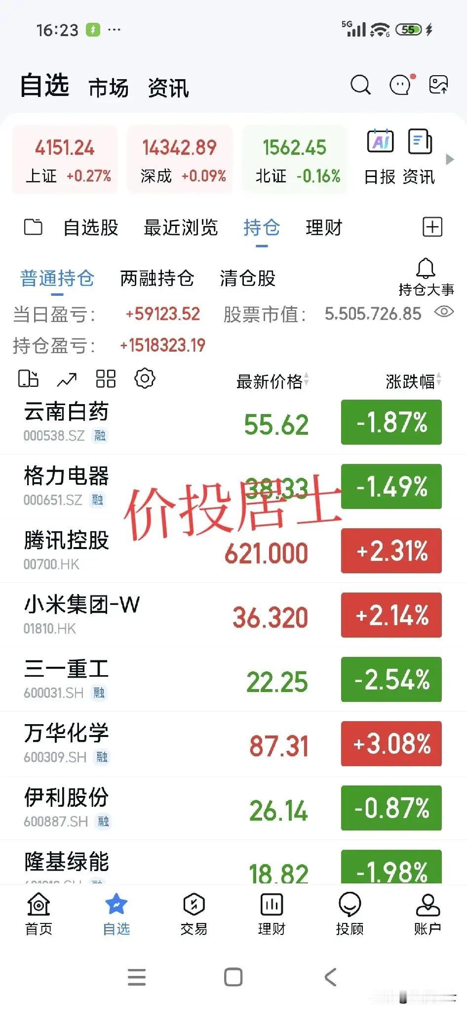 段永平在接受王石和田朴珺采访的时候,田朴珺倒是说了一个段永平最大的优点,她说王石是个简单的人,那么段永平则是比王石还简单的人。不知道大家怎么看这个表述? 个人观点是大道至简,只有简单的人才能更好的契合大道。越简单的人越容易发挥出来常识的力量。这里我还要强调一个之前给大家说过的道理,那就是反者道之动,弱者道之用。反者道之动大家应该都理解了吧,那么这个弱者道之用的意思是说道会把和它不符合的事物进行不断弱化,极端的情况甚至会毁灭这些事物! 接着说,复杂的事物乃至包括复杂的人是无法契合大道的,因为大道至简,你那么复杂还怎么去契合[笑哭] 就像价值投资,其理念非常简单,复杂的是在股市里各种各样的人与人性。这一个复杂会直接把你挡在价值投资的大门之外。这也就是为什么当年我20岁的时候,一看价值投资的原理立刻就能通透的原因,因为我也是个简单的人!就凭这么久以来,我愿意安心的当个免费博主,并愿意和大家天天分享真实的实盘,和大家天天说些真心话与实话,也可以证明我是个简单的人吧[呲牙]大家觉得呢?