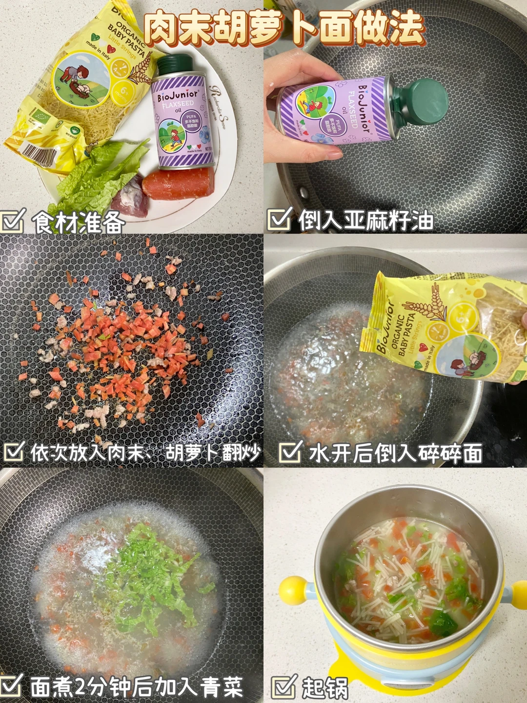 4️⃣7月龄可以添加辅食面,从碎碎面开始,锻炼咀嚼能力。给宝宝吃婴儿专用碎碎面,辅食婴幼儿标准,营养全面、不卡喉。