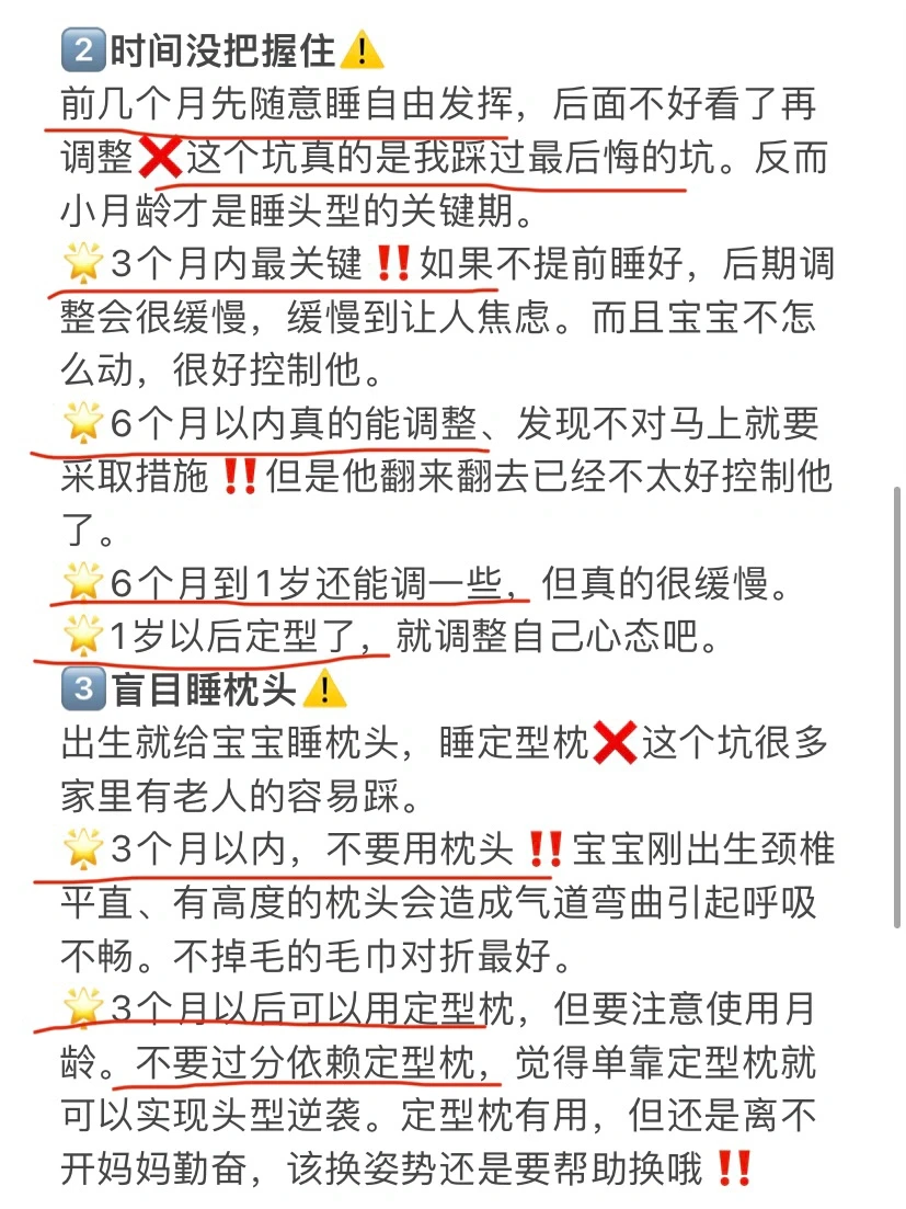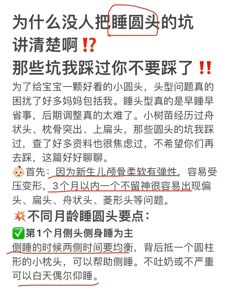 前几个月先随意睡自由发挥,后面不好看了再调整❌这个坑真的是我踩过最后悔的坑。反而小月龄才是睡头型的关键期。
