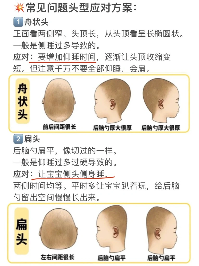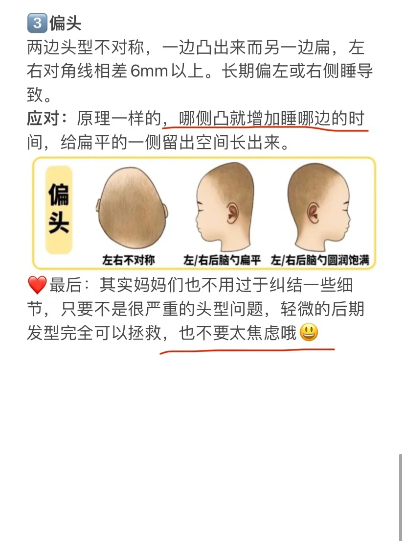 👶🏻首先:因为新生儿颅骨柔软有弹性,容易受压变形,3个月以内一个不留神很容易出现偏头、扁头、舟状头、菱形头等问题。