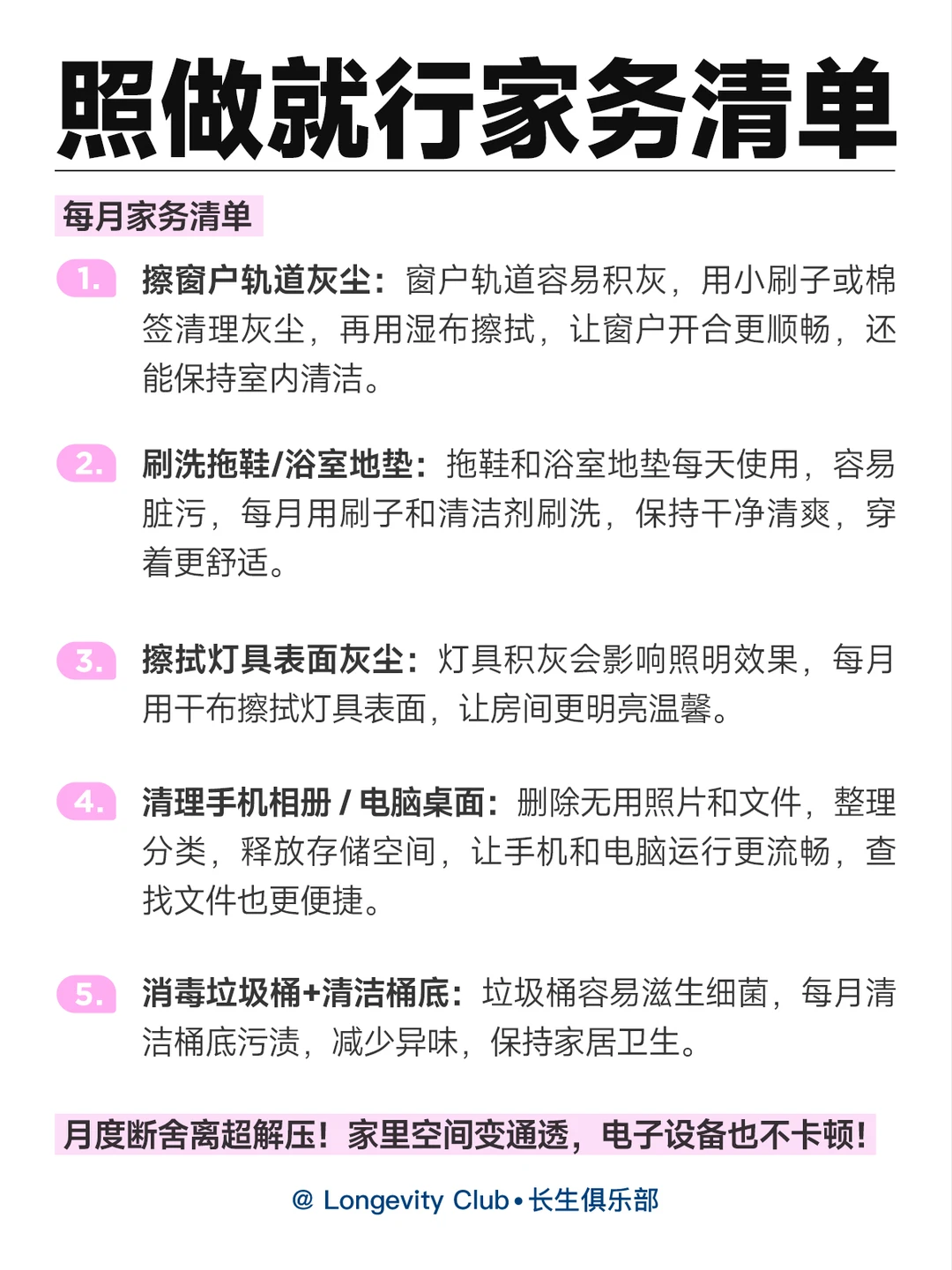 家务清单表 家务清洁 提升幸福感 生活方式 生活就该有所期待 生活小妙招 成长 大大方方做自己 女生必看 女性成长