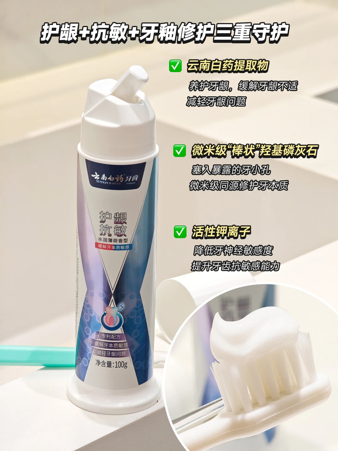 ✅添加了添加云南白药提取物,能够缓解牙龈不适,减轻牙龈问题筑牢口腔屏障;