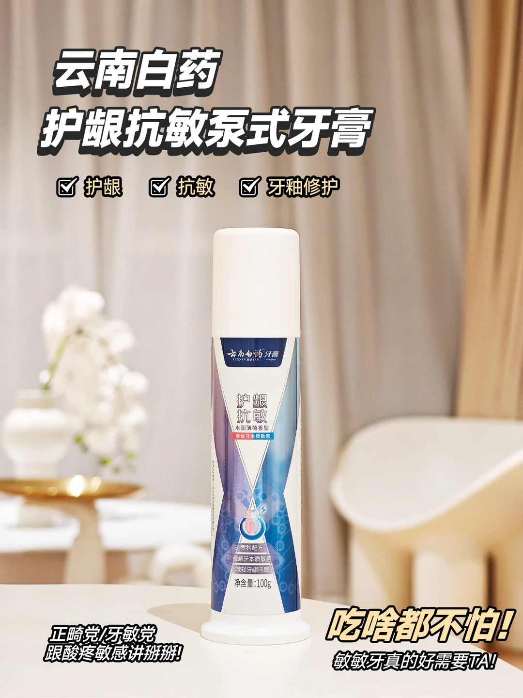 从今天起,温柔对待你的牙齿:屯上一支云南白药护龈抗敏泵式牙膏、换把软毛牙刷、戒掉碳酸饮料、定期检查,让敏感成为过去式!