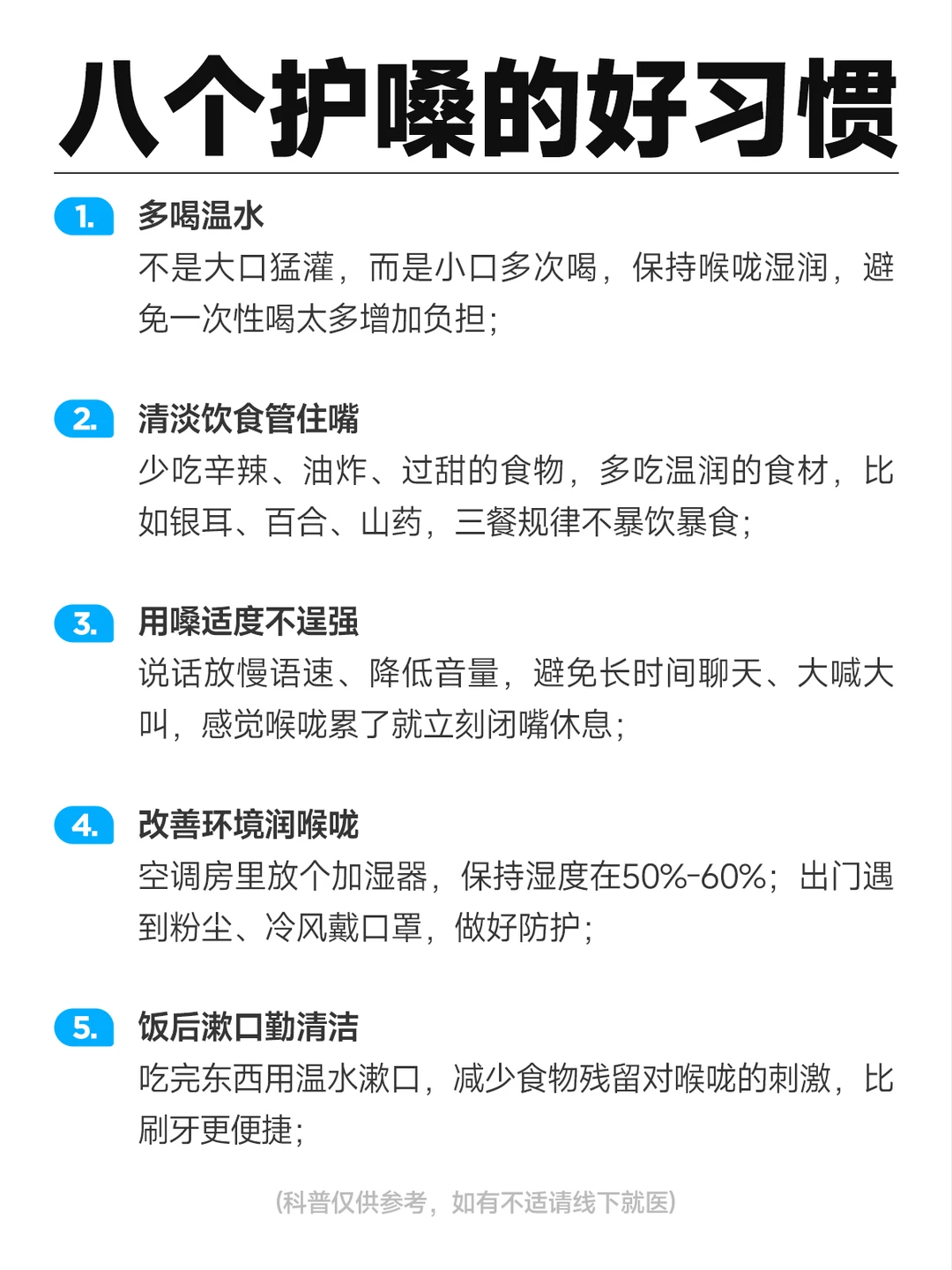 宝娟们!平时要好好护好嗓子。慢性咽炎是个“磨人的小妖精”,没法一蹴而就,全靠平时慢慢调理✨ 把护嗓融入生活,喉咙舒服了,说话、吃饭都香!