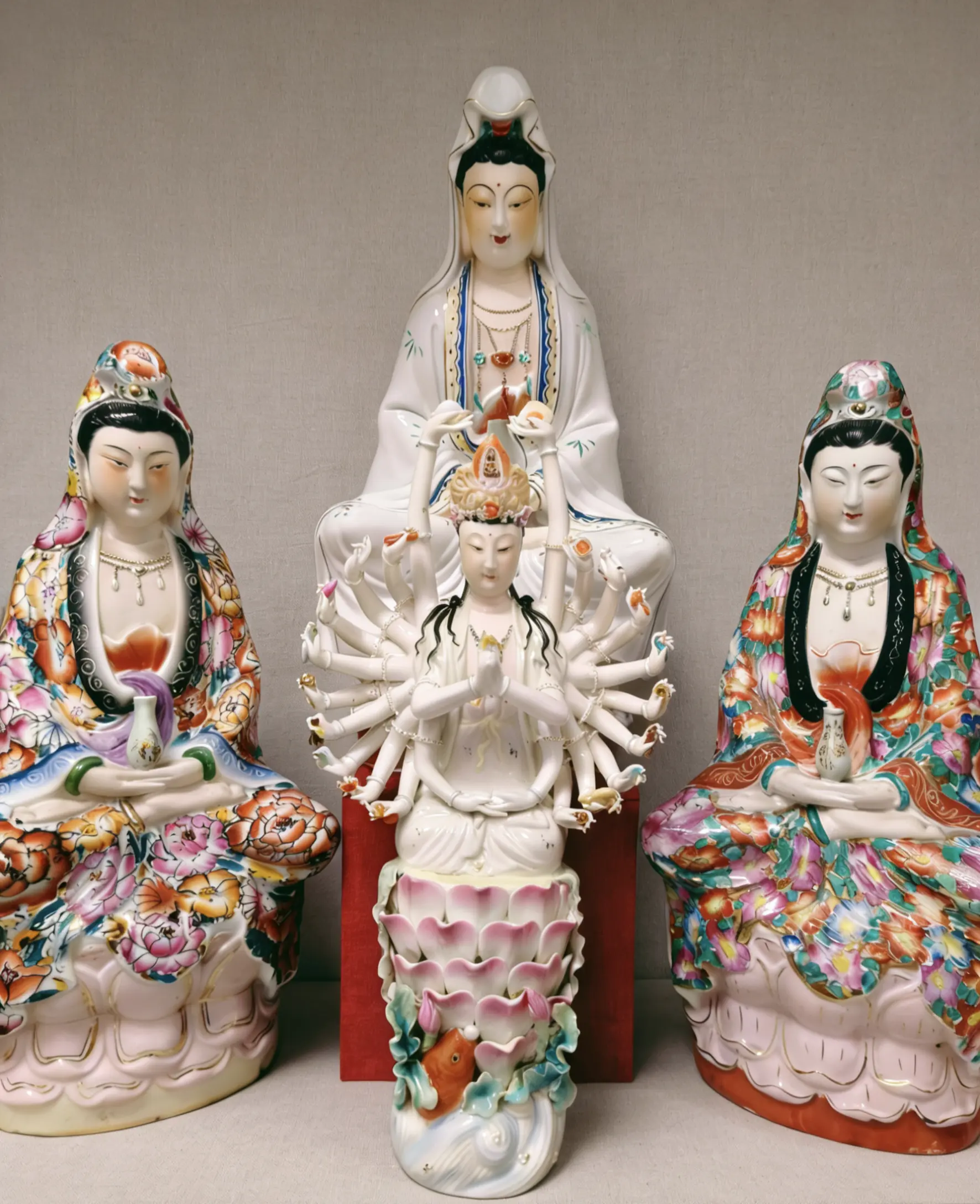 生披彩色衣,来把慈心济。 百花环法相,甘露润尘泥。