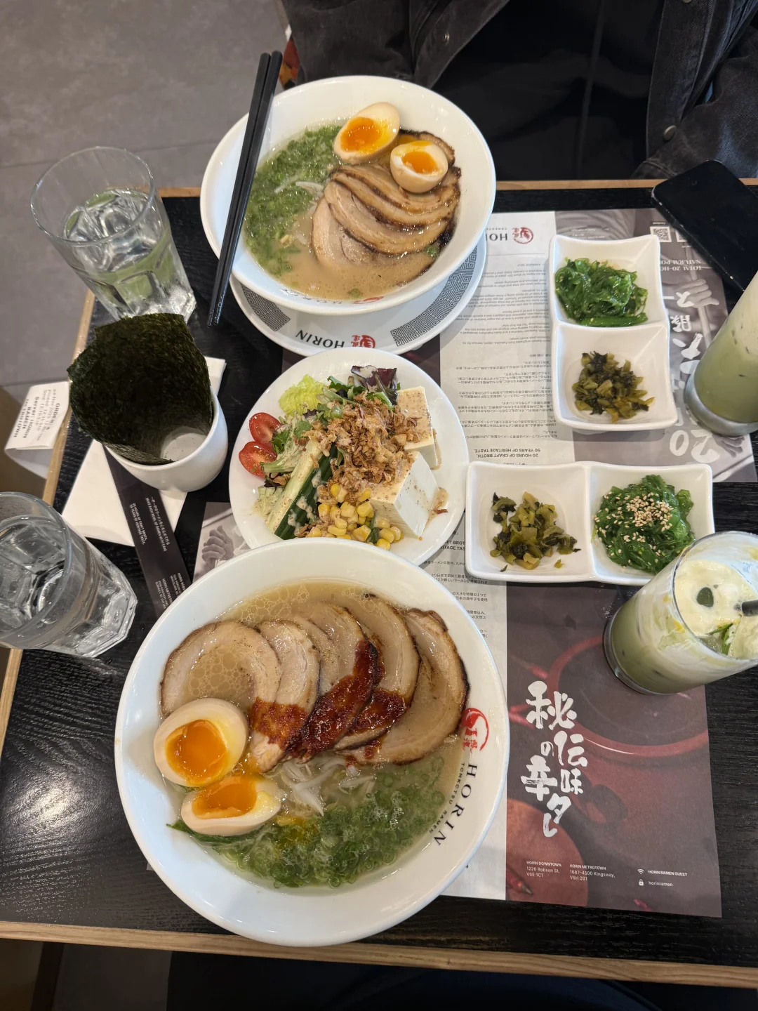暖慕开了大概有10年了吧,到现在还排队,说明是实力派,Horin新开的几个月从开业到现在也一直在排队,但是这两家我都不爱吃,感觉像挂面,阳春面似的,而且汤是温温的,不够香,我还是更喜欢南厨的拌面和金太郎的Miso拉面,或者三宝亭的汤面和蘸面都不错,我发现我喜欢吃的这三家都是曲了拐弯跟方便面有点像,但Horin和暖慕都是细细直直,看来有人专门爱吃这一卦的,所以我想问问爱吃暖慕和Horin的人,你们是不是不喜欢金太郎,南厨和三宝亭这个风格的
