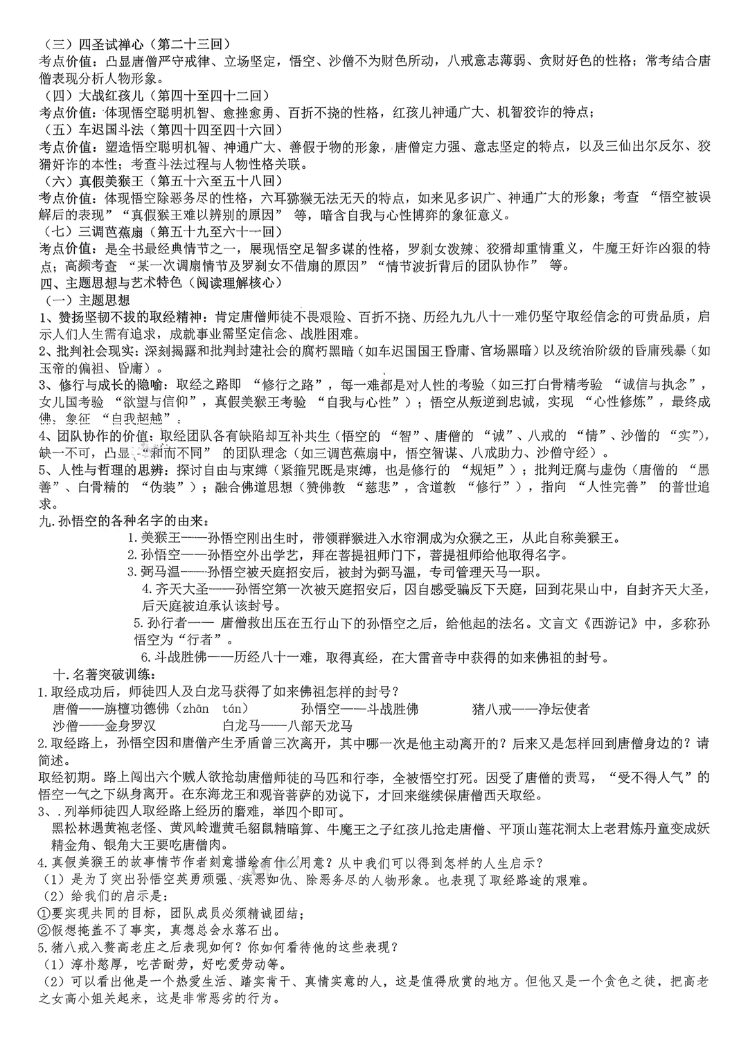 西游记知识点与考点梳理