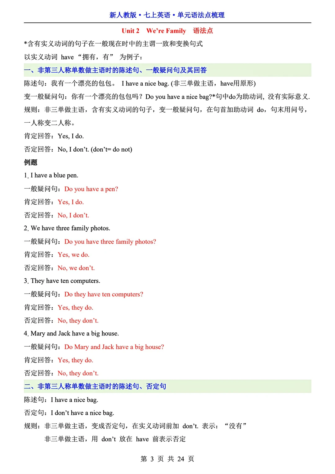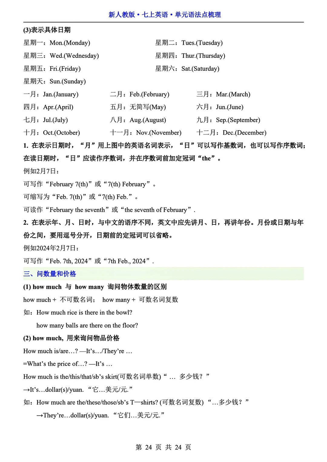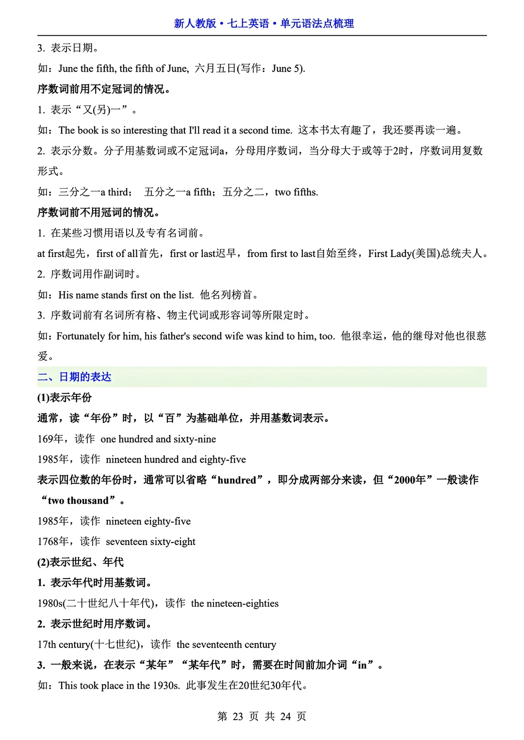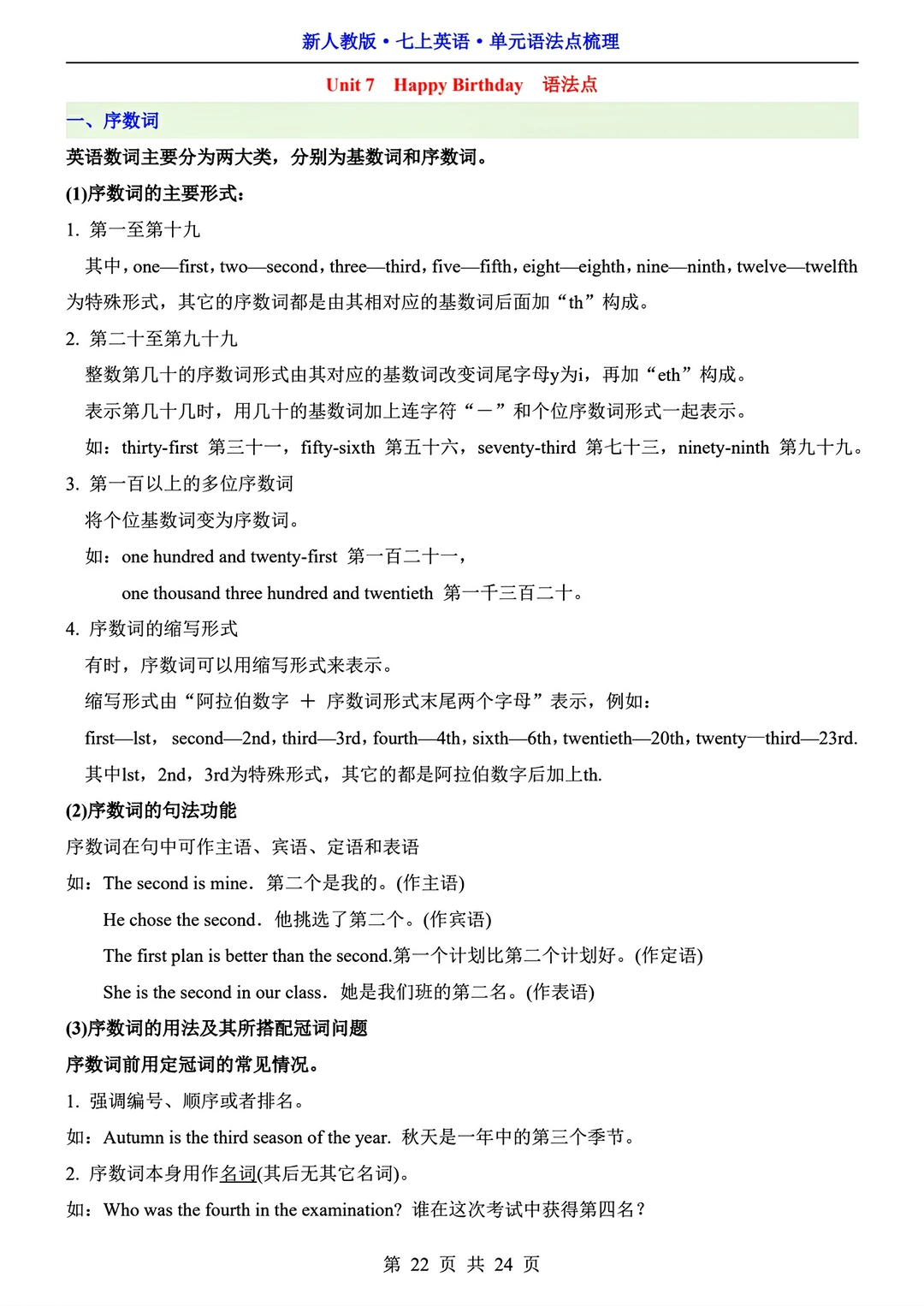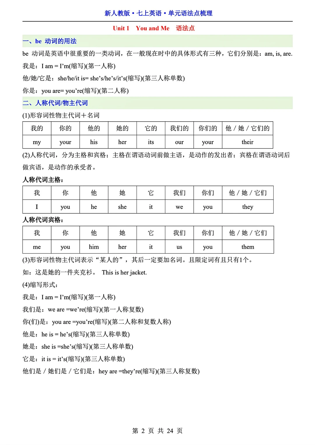24页pdf版,新人教版,很不错的一份资料,条理清晰,内容饱满,语法点配有题目,题目下有答案与解析,很适合考前自行过一遍。
