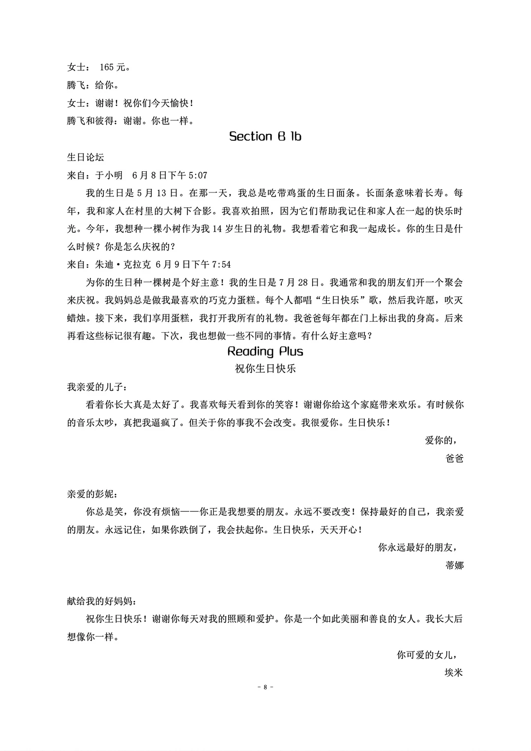 共8页,Pdf版与word版,学校老师发给学生的, 其实我收到的也就几张破纸,有些字都不清晰了,很多我发的笔记资料都是进行了加工处理的,扫描修复再转word再略作编辑