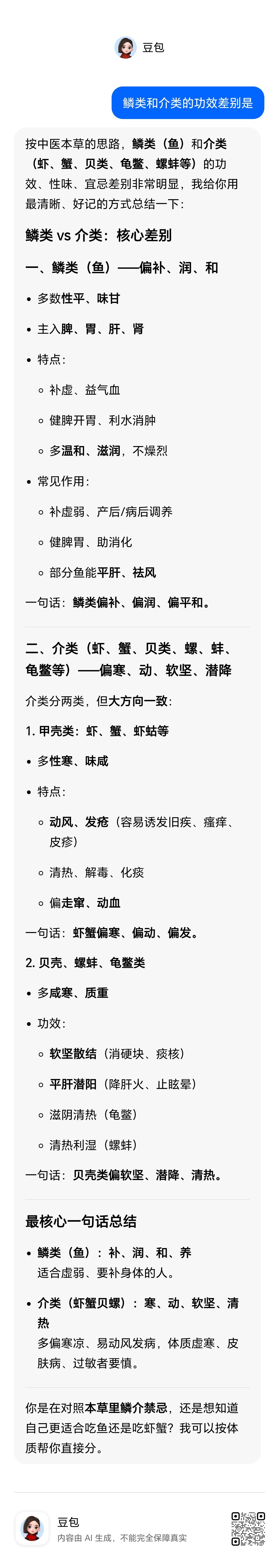 虾蟹鳖比鱼更动风。本草书多更强调忌无鳞鱼。比如医经允中说孕妇可以少吃肉,但要忌虾