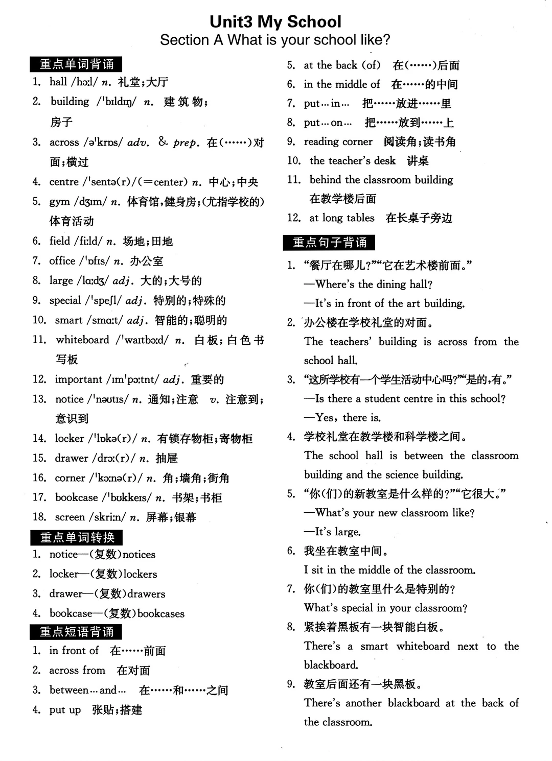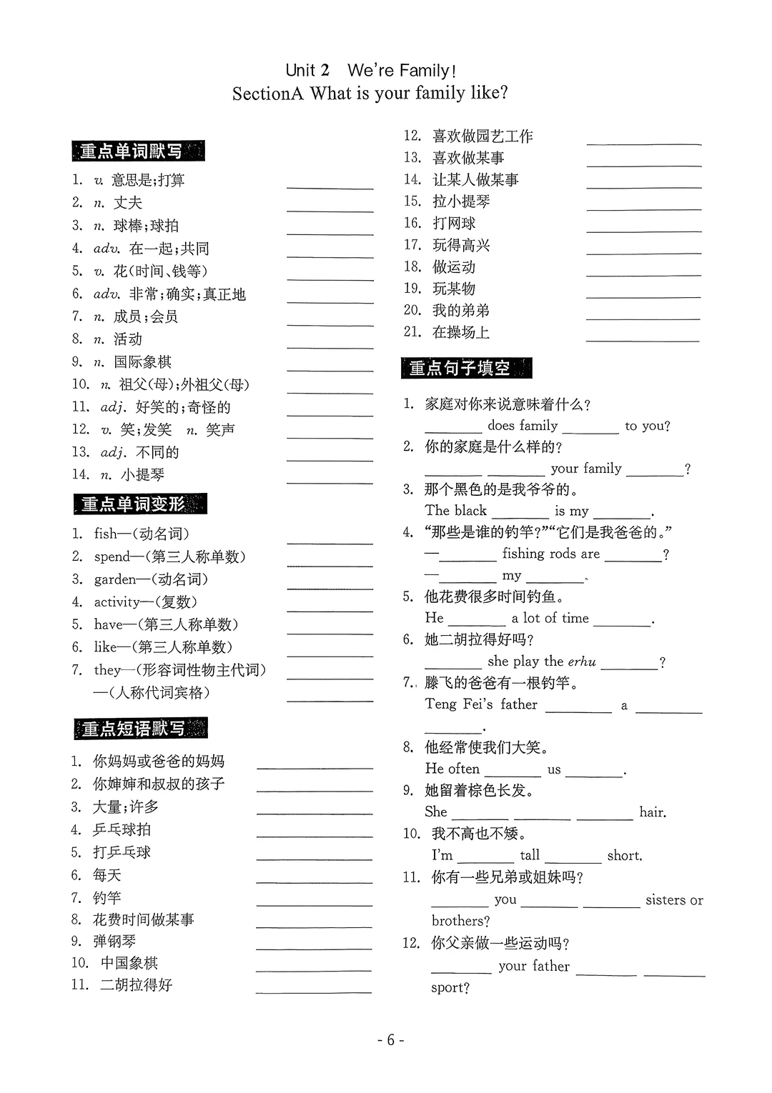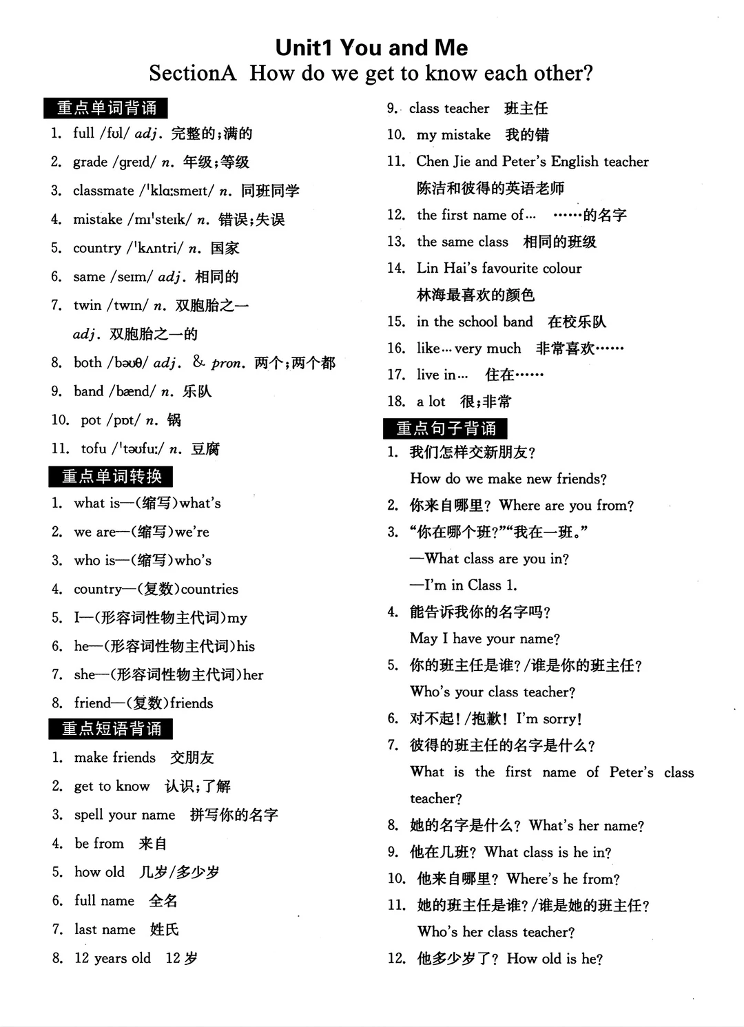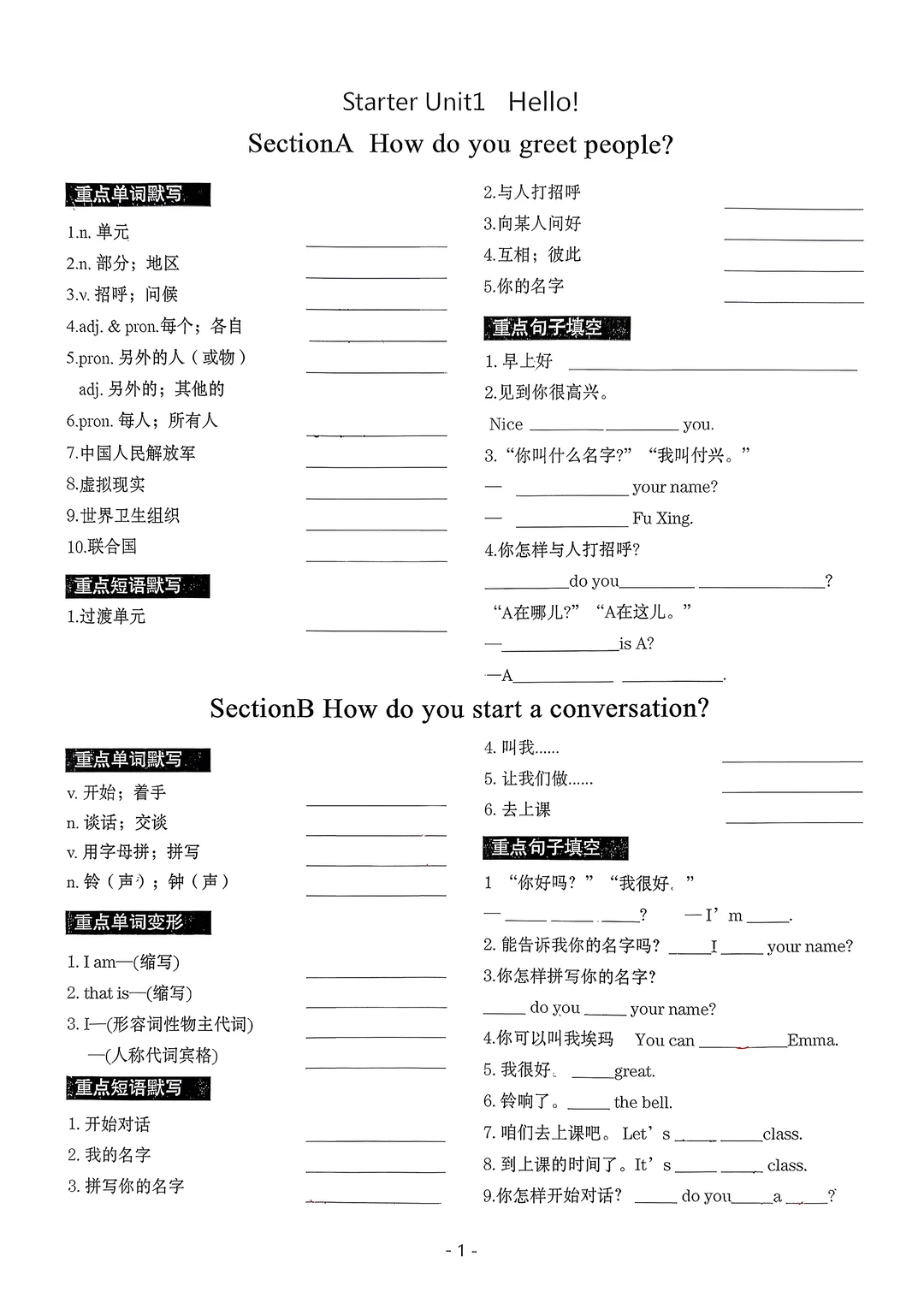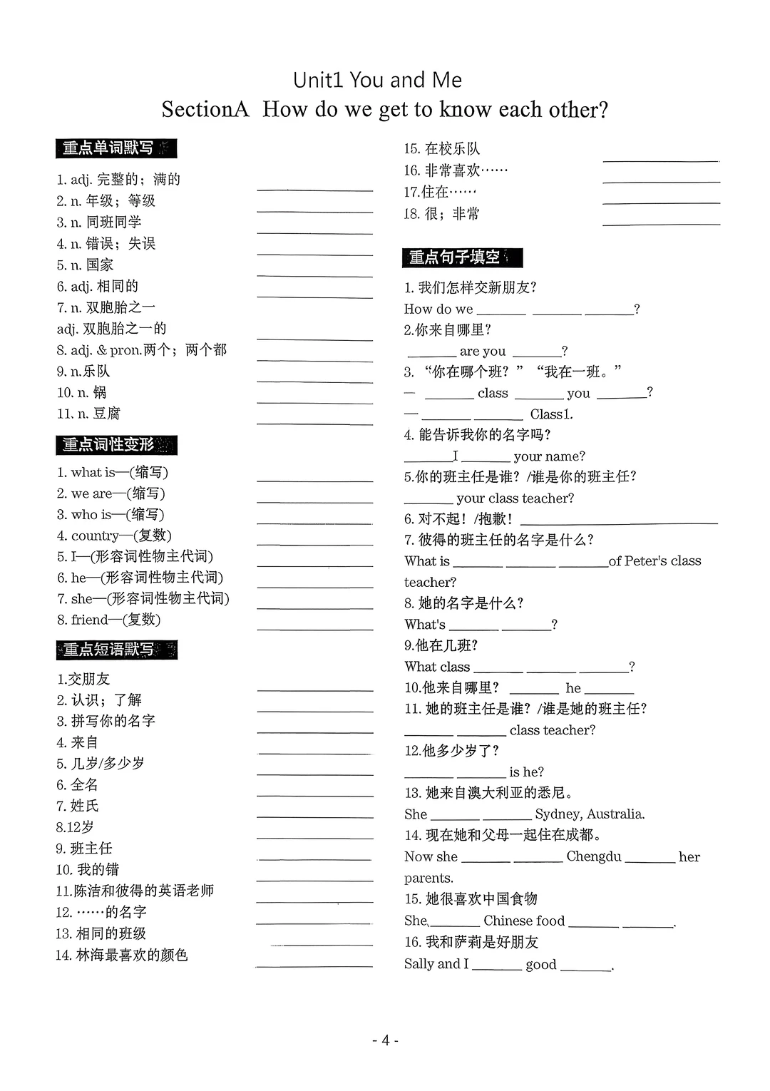 2025七年级上册英语默写本