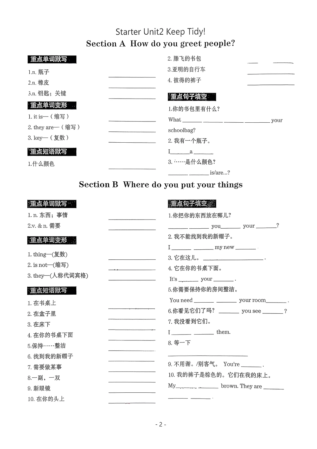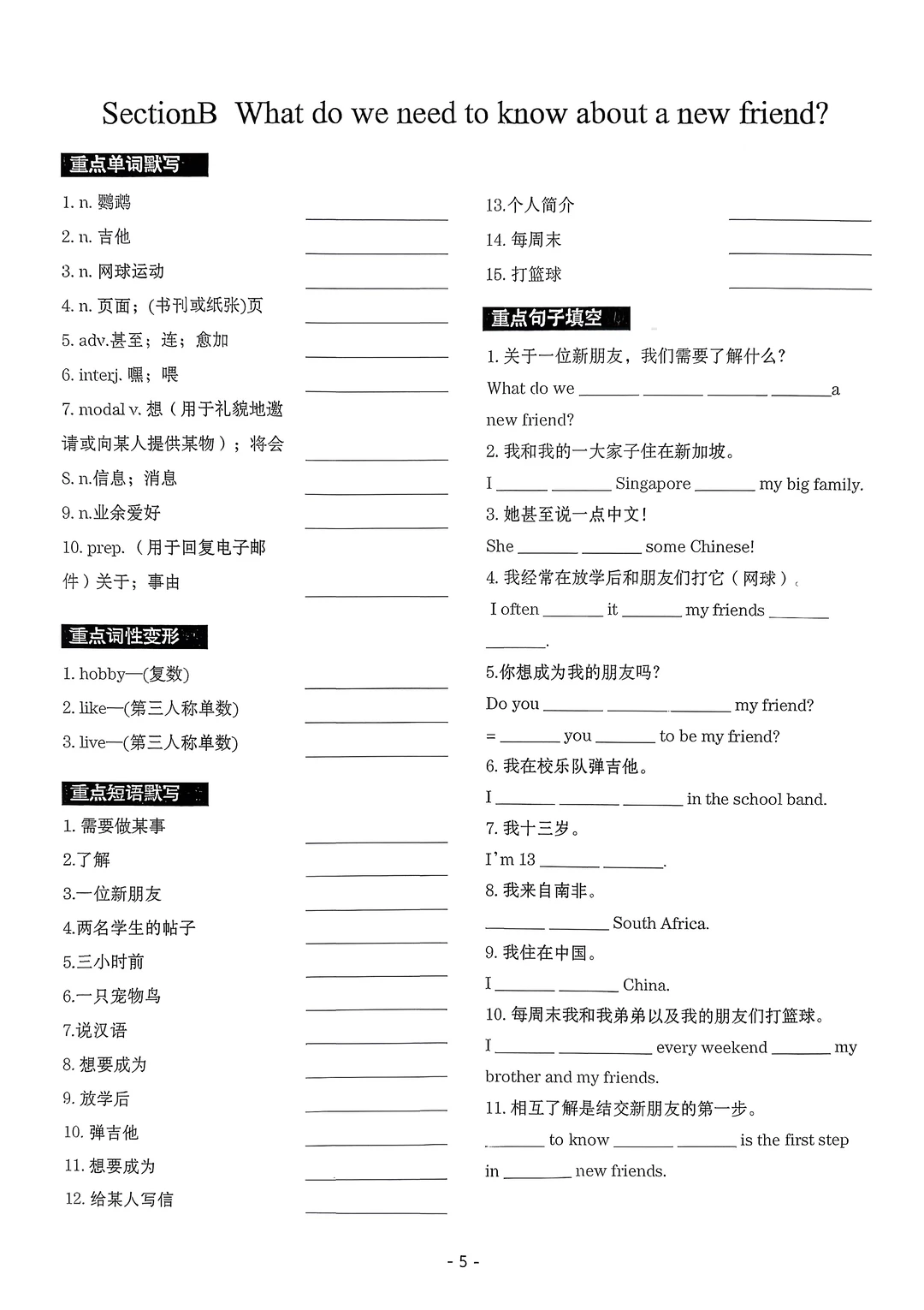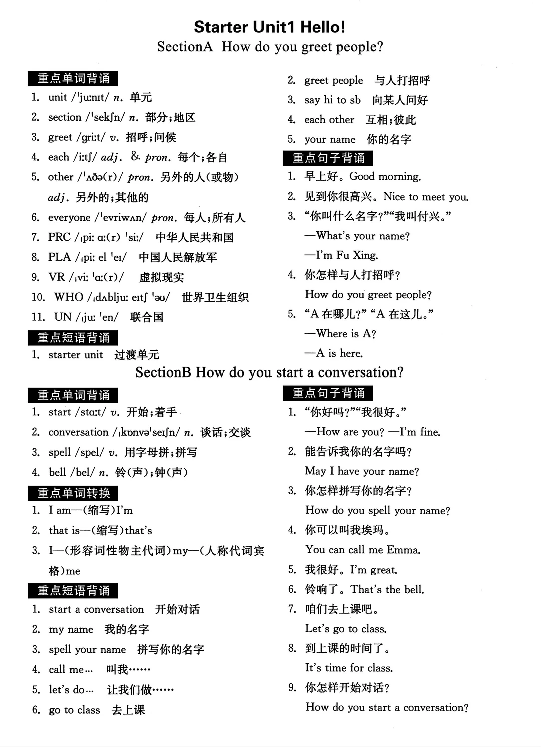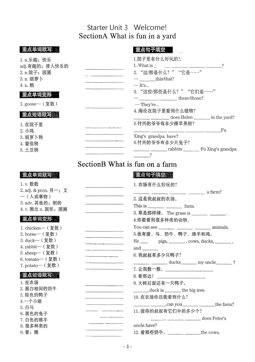 2025七年级上册英语默写本