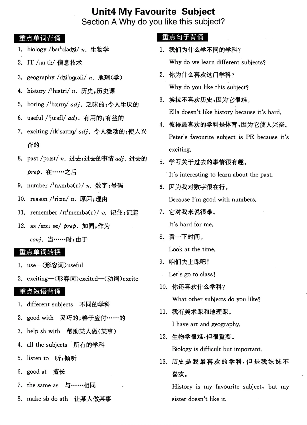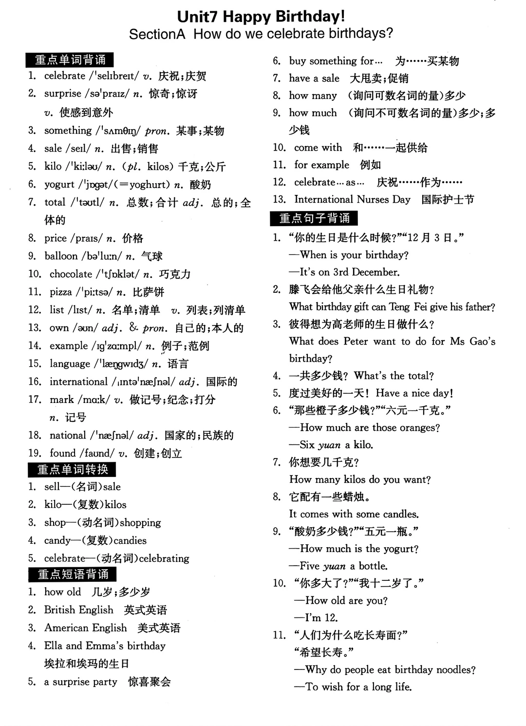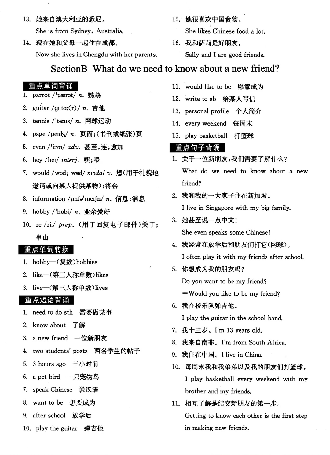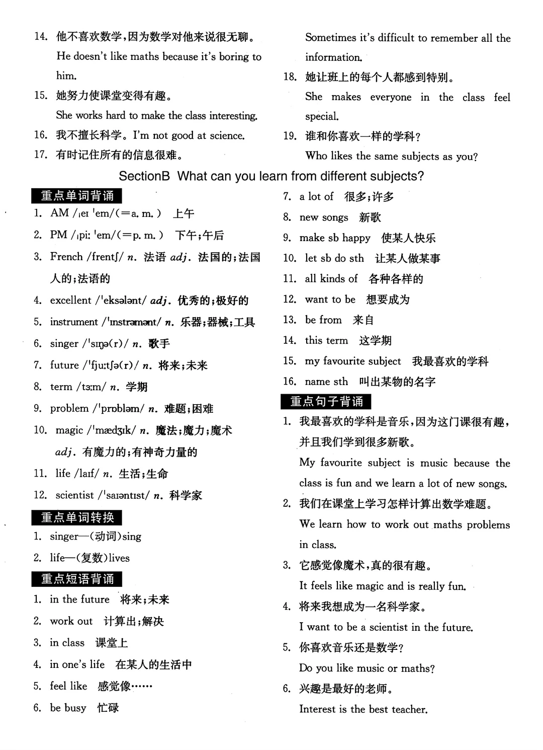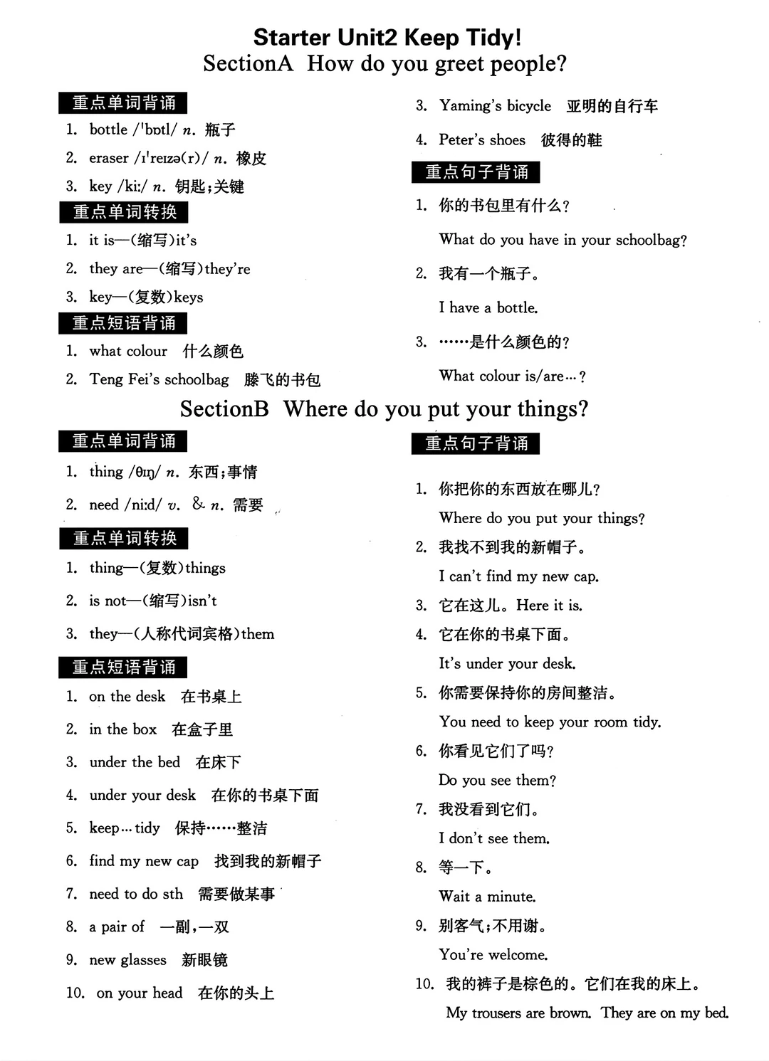 2025七年级上册英语默写本