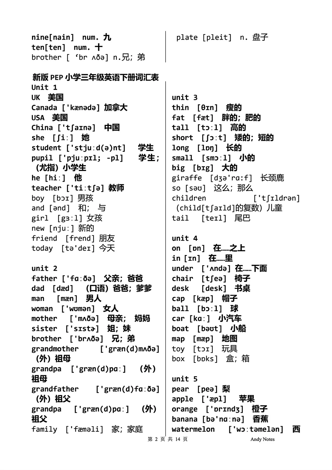 14页word版,人教pep版这几天收到的一份5升6的英语作业资料,我觉得这个资料排的挺好的,拍下的话会把第2张图里面提到的资料一起发,对于小升初的复习很有用的一些英语资料