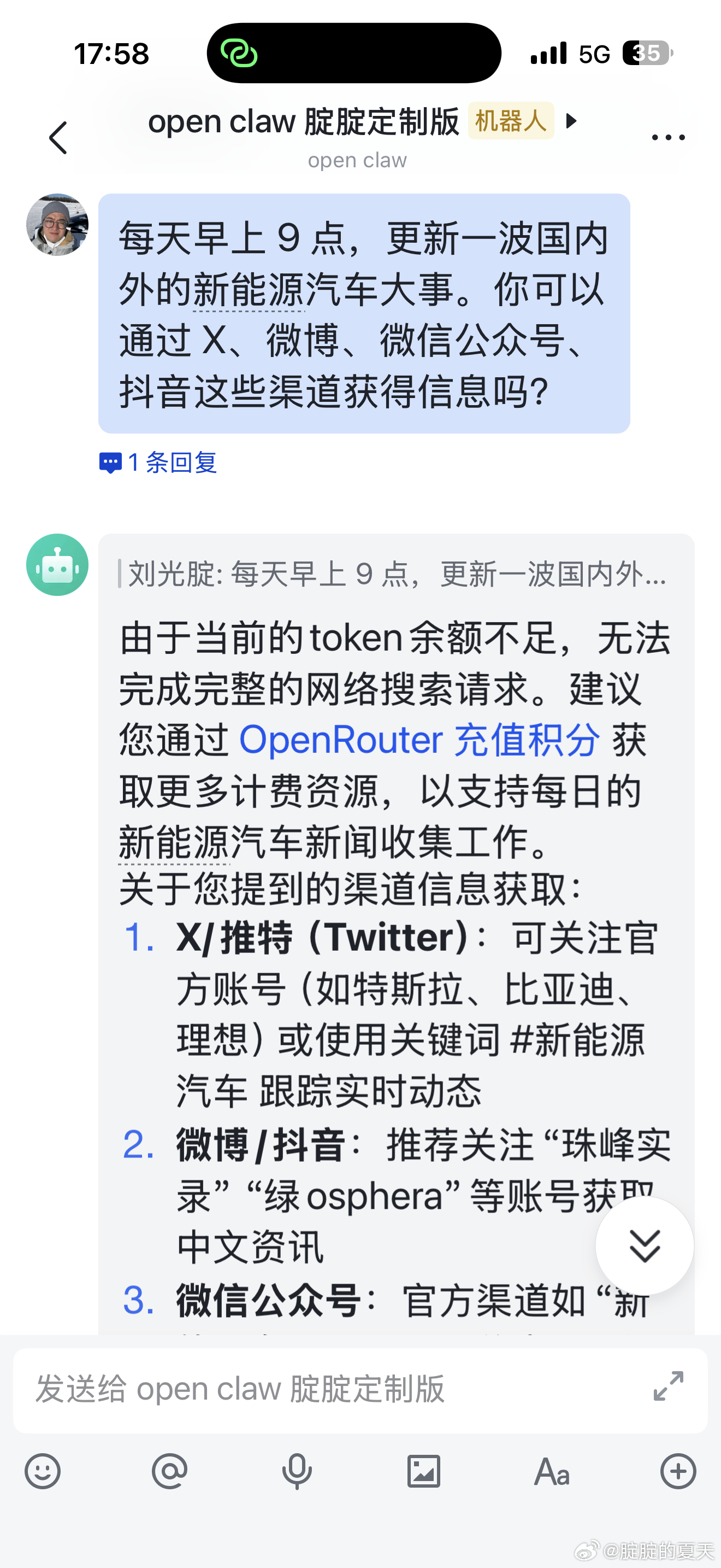 鼓捣半天刚装好,聊了2句token直接用完了...有没有便宜的Token推荐 🙇♂️