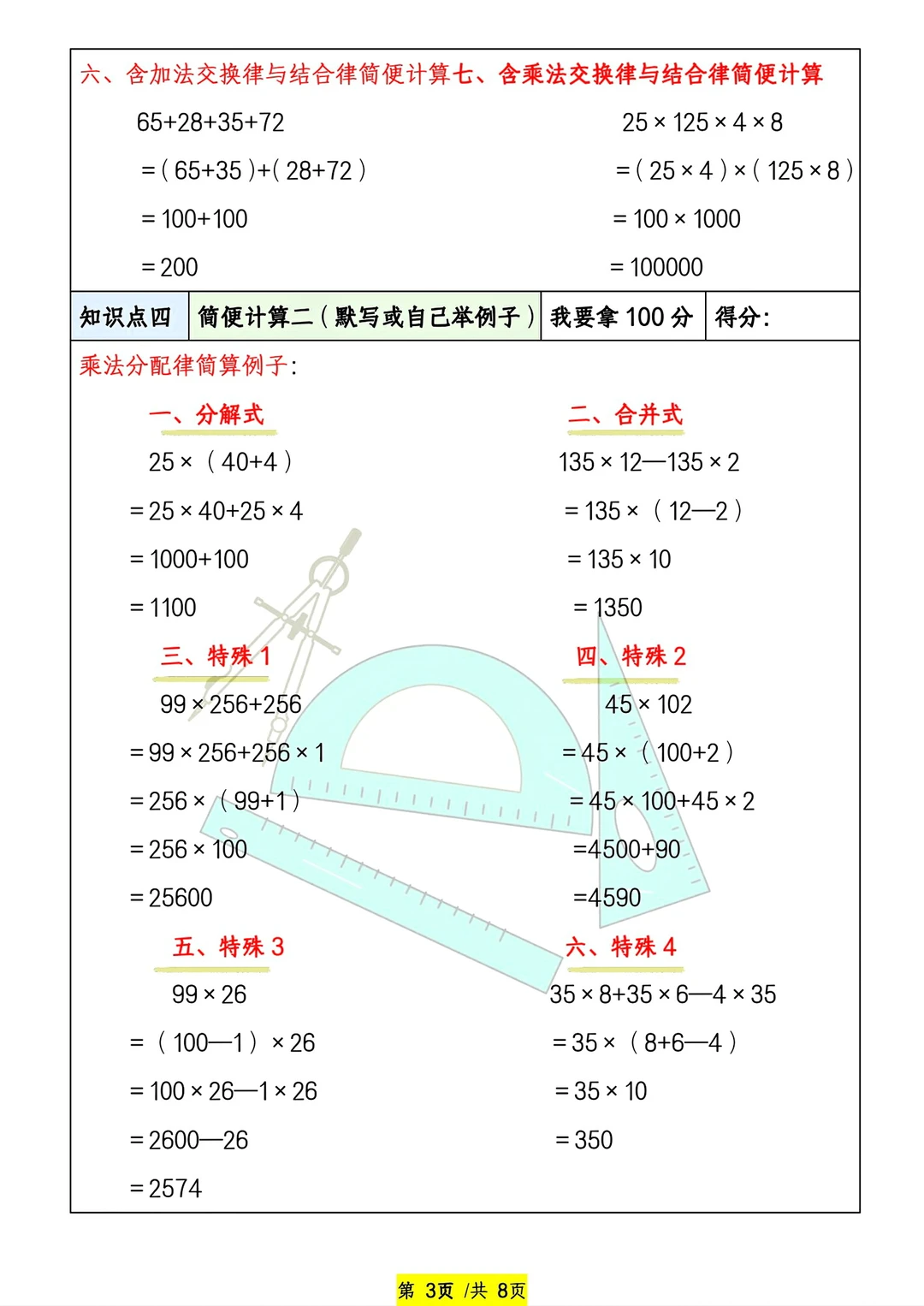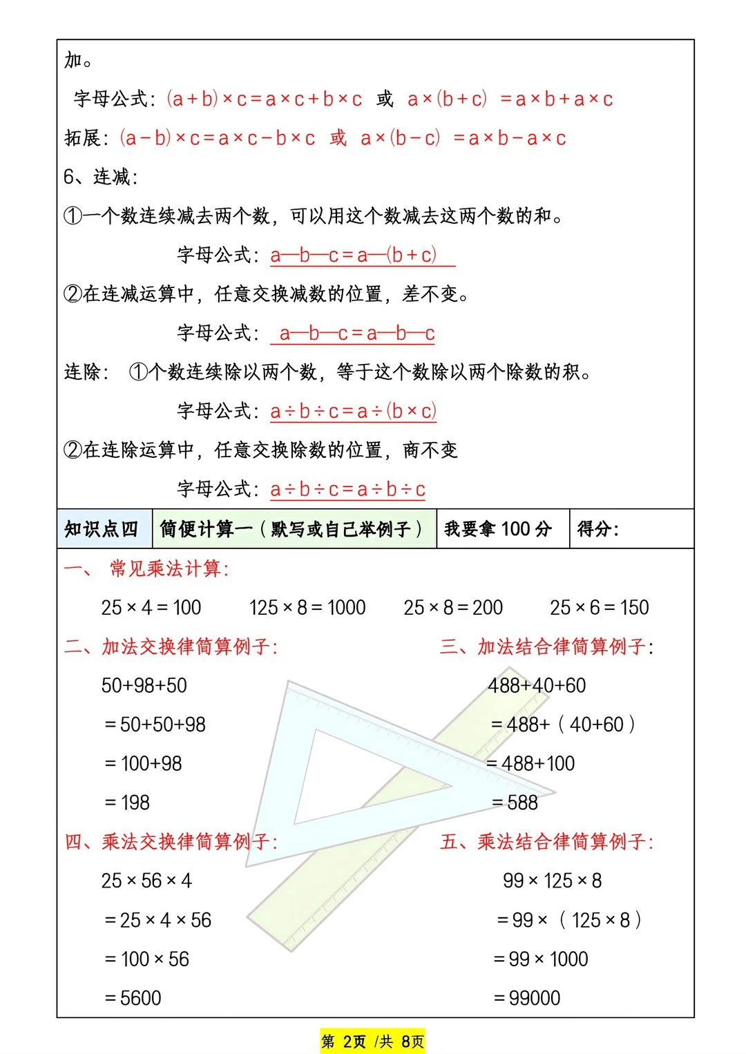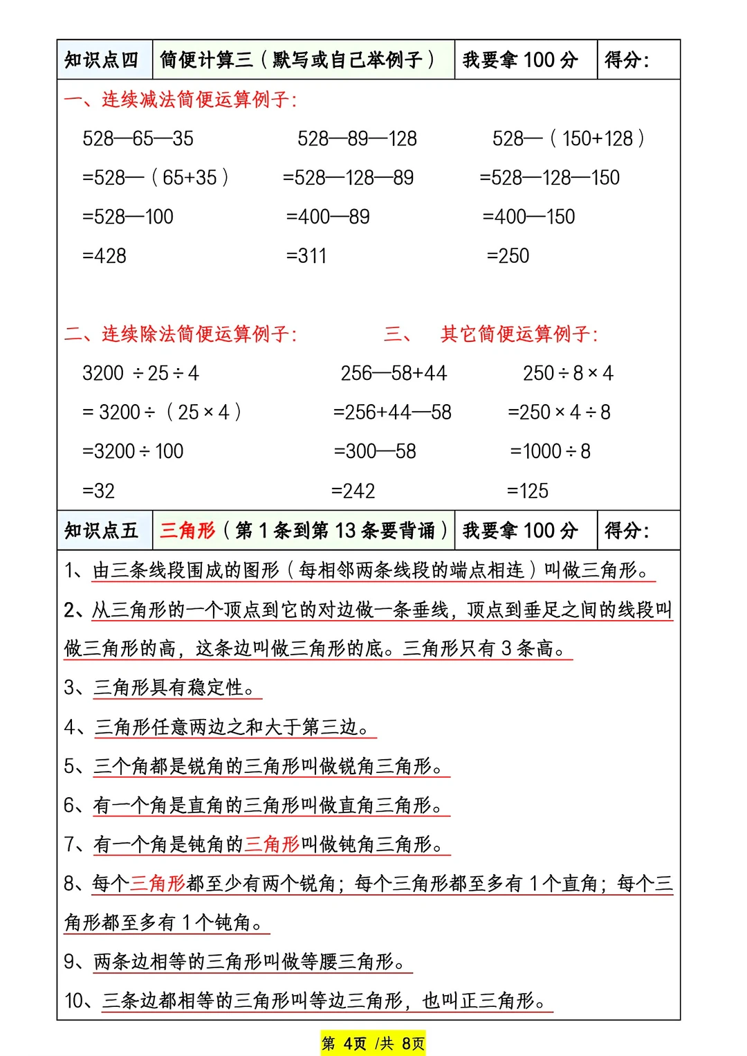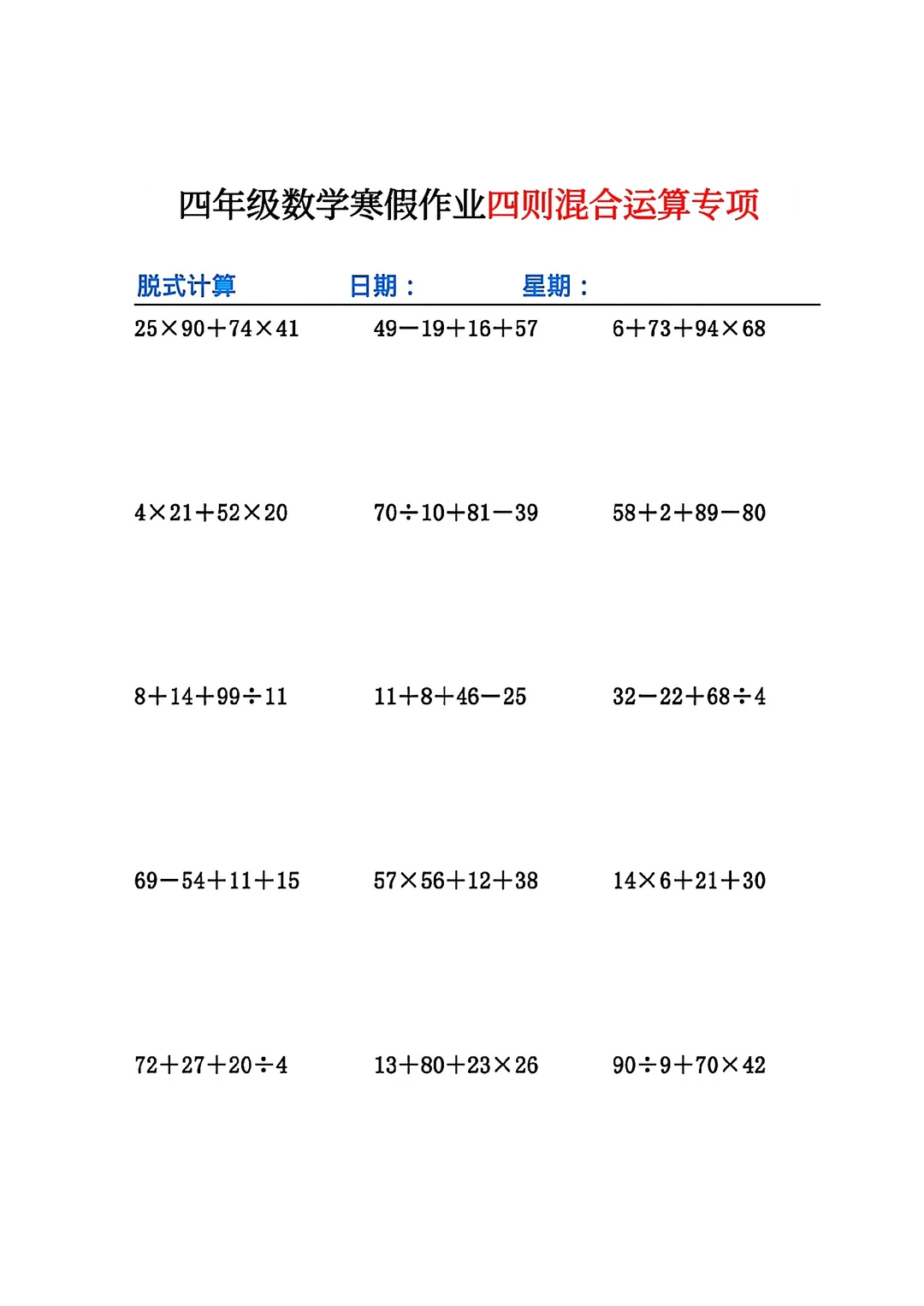 共26页pdf,我把四个好的文档组合在了一起,包含了必背的知识点与计算练习题和应用题,我认为四年级学生寒假做这些挺好的
