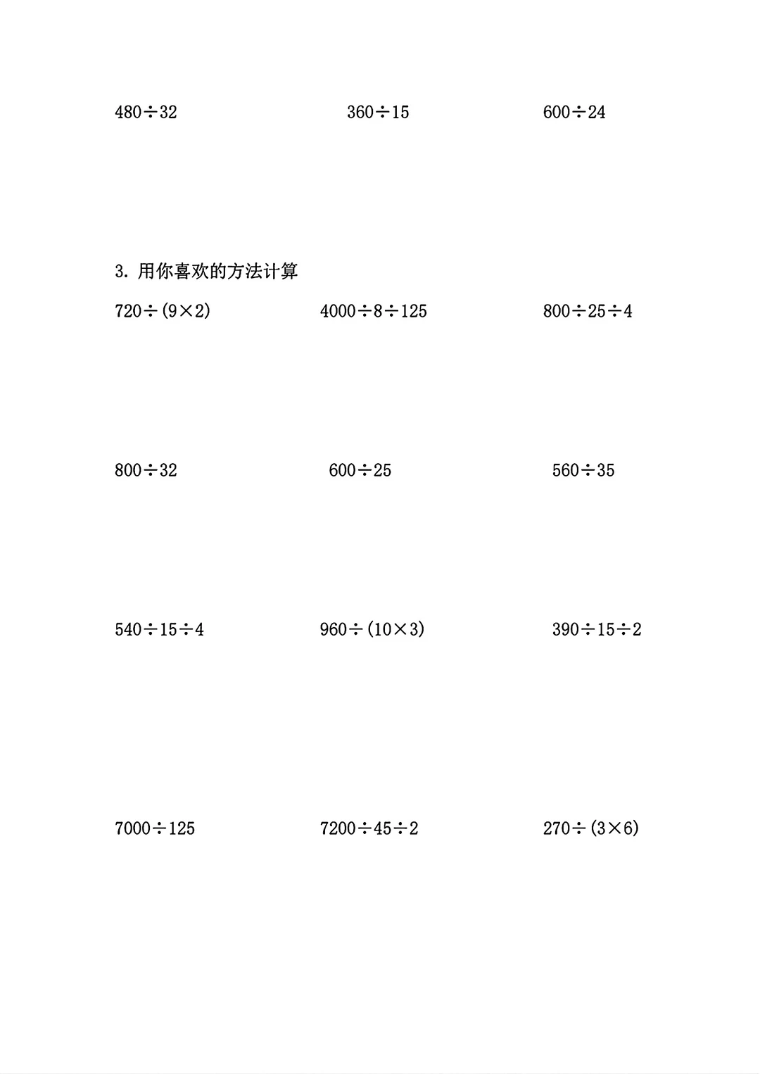 四年级数学寒假预习复习资料
