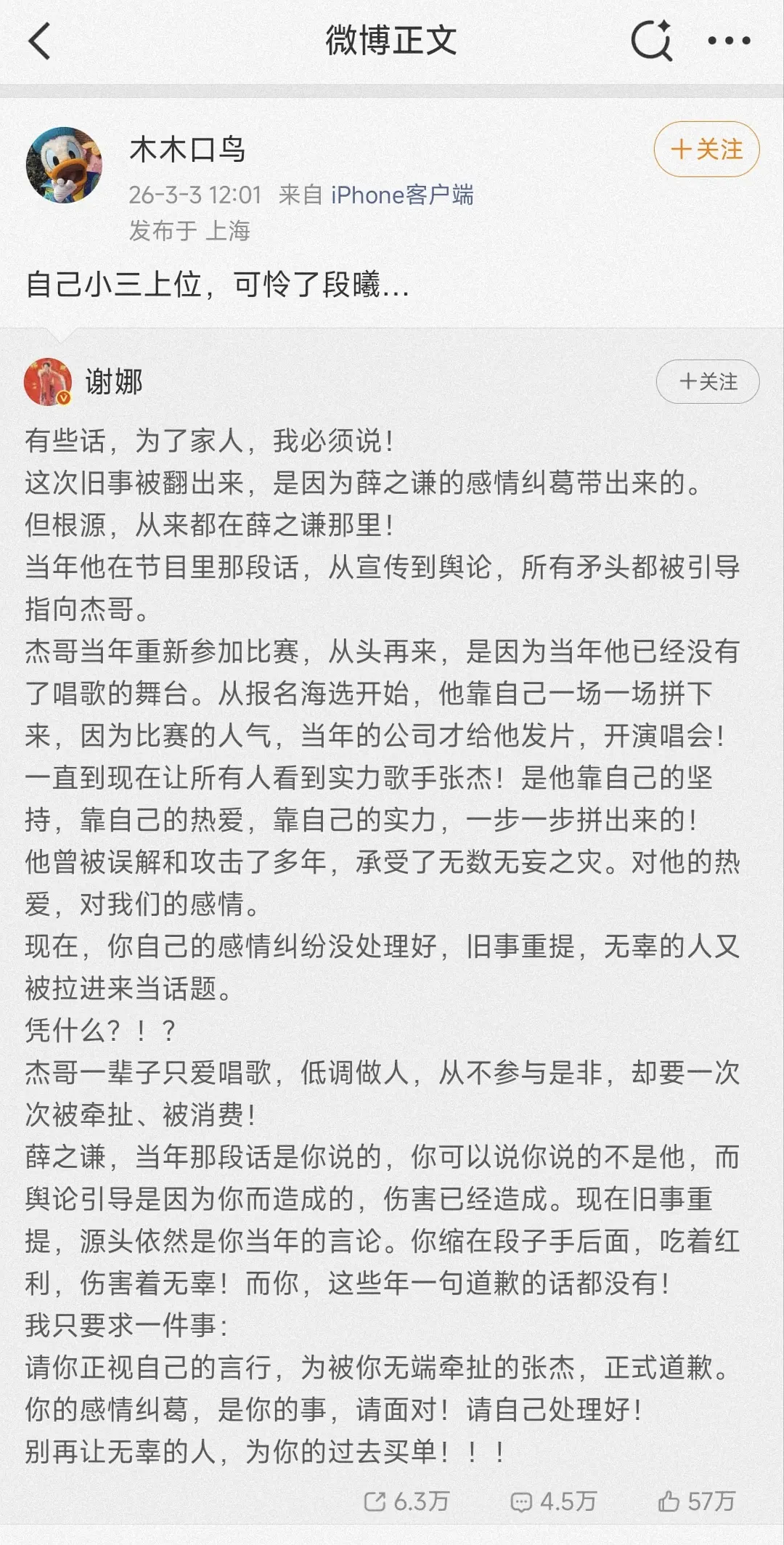 薛之谦wb互关发声,薛之谦自己躲在后面,🤡倒是又唱又跳的。谢娜那两口子怎么样影响打月台男吗?