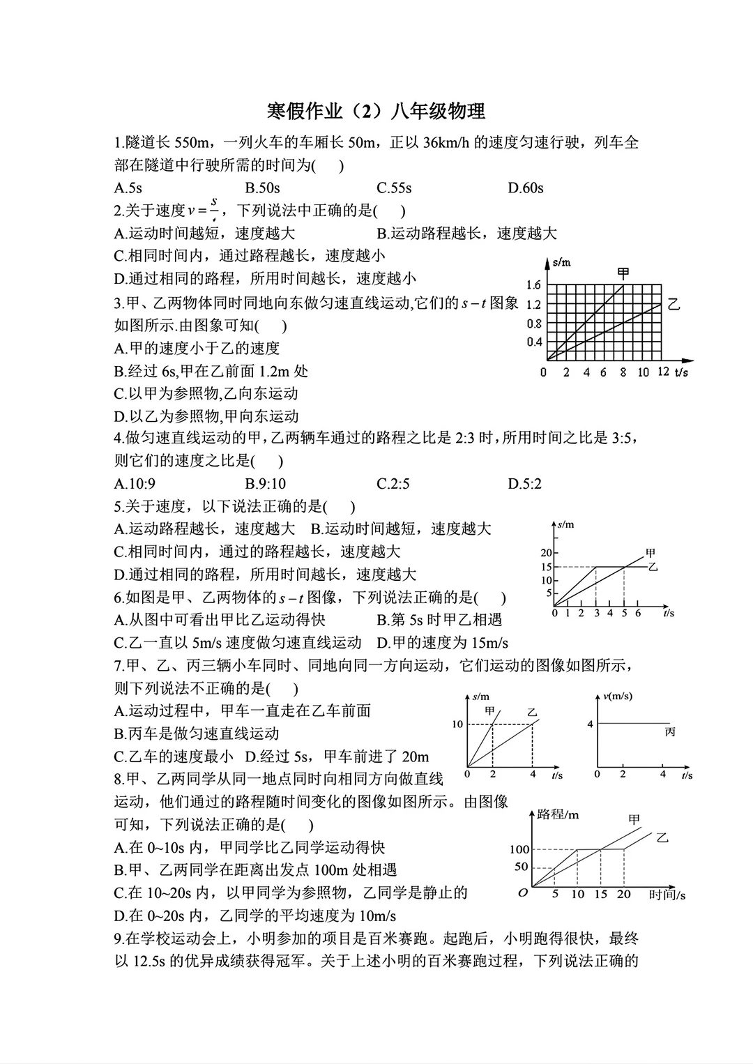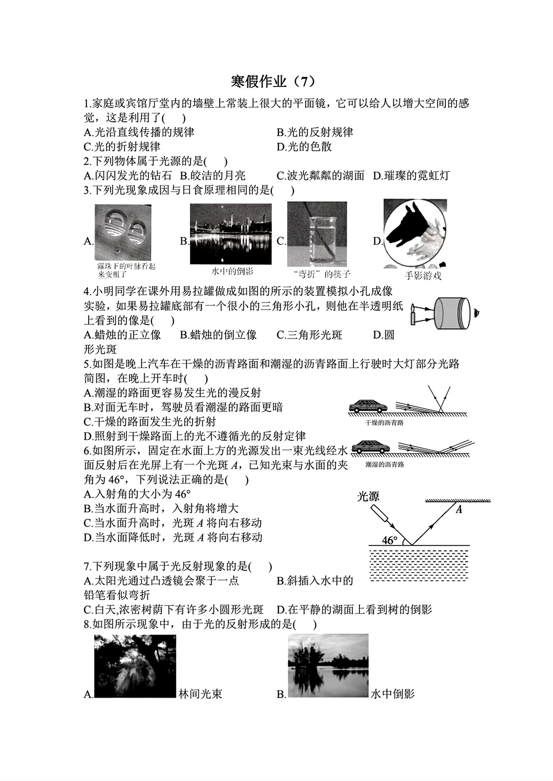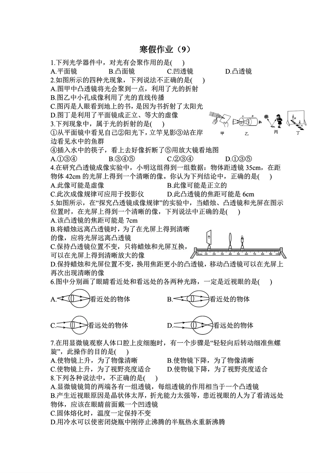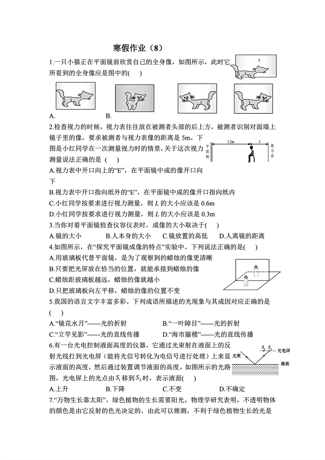 八年级物理寒假作业