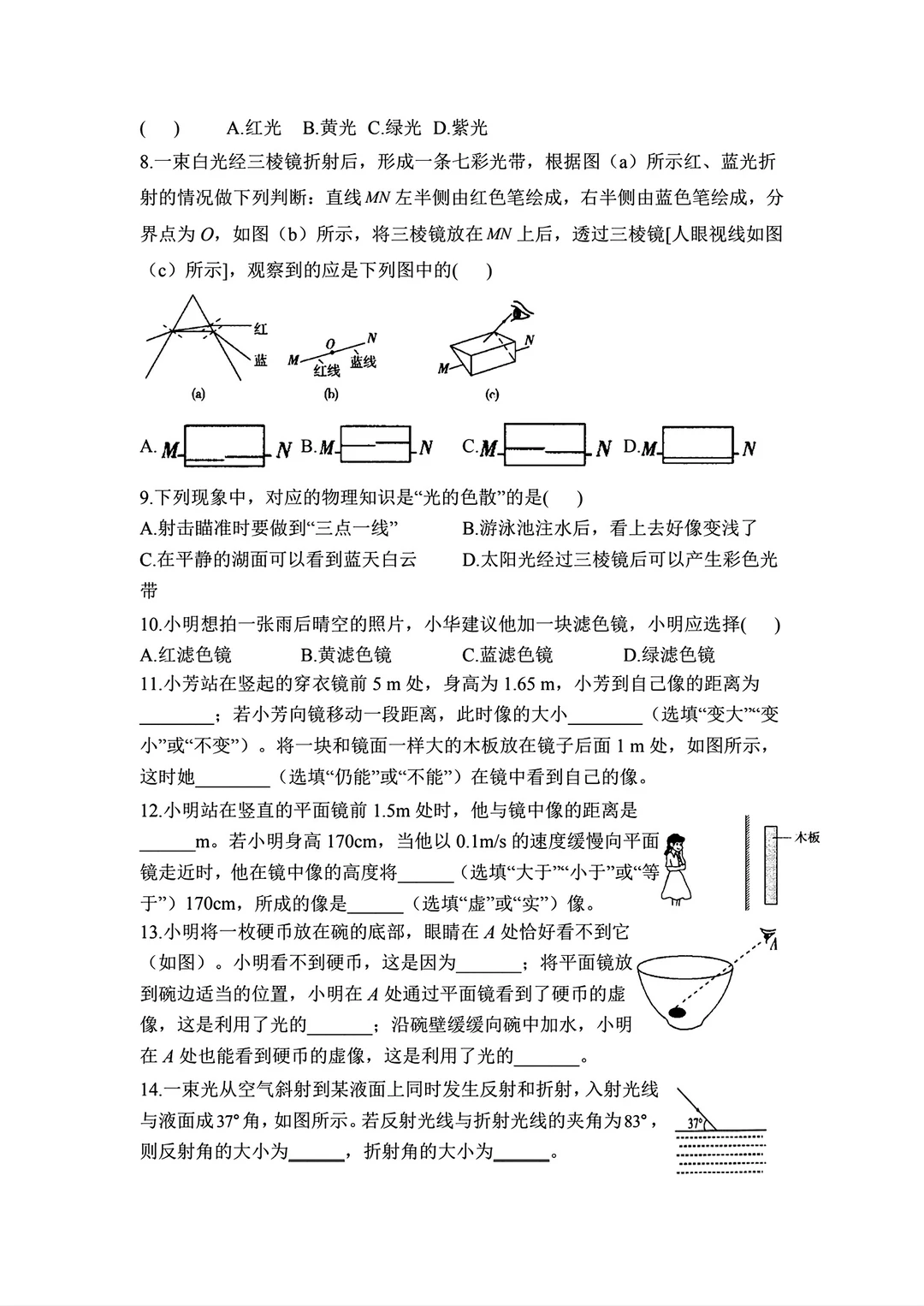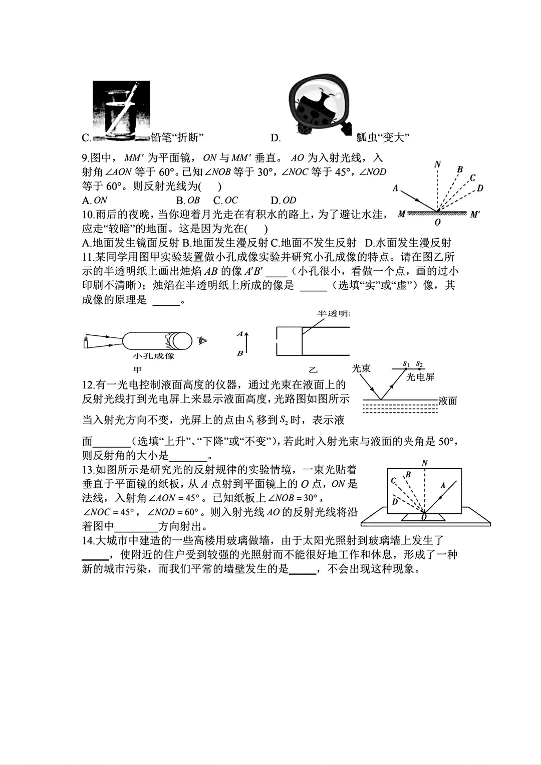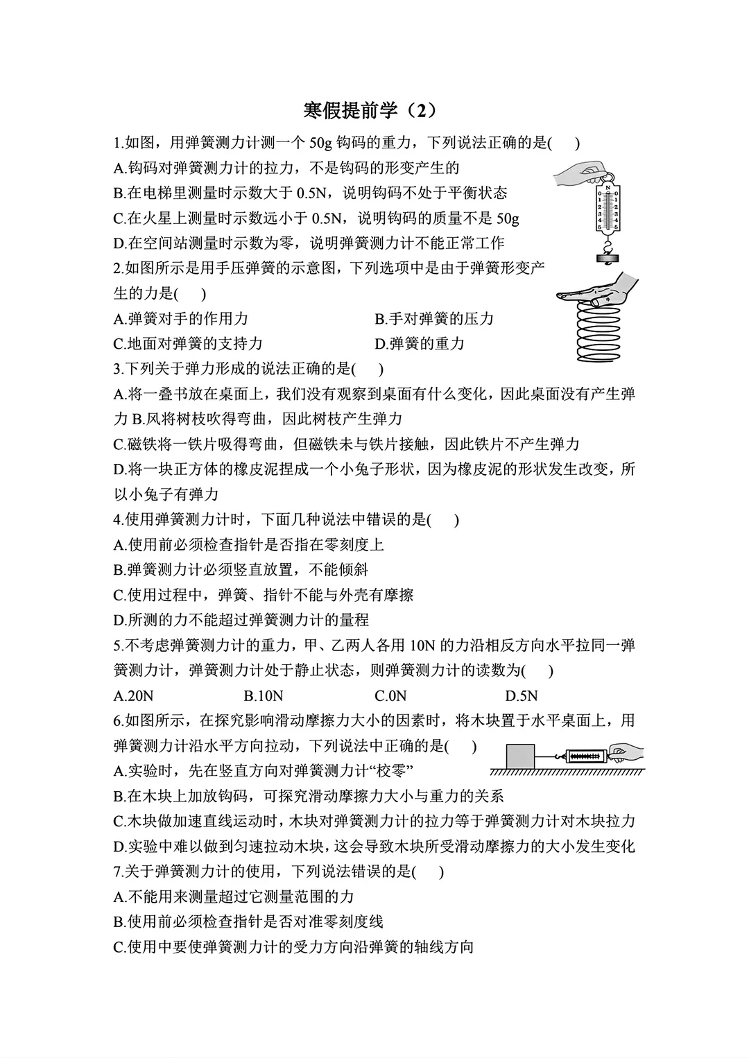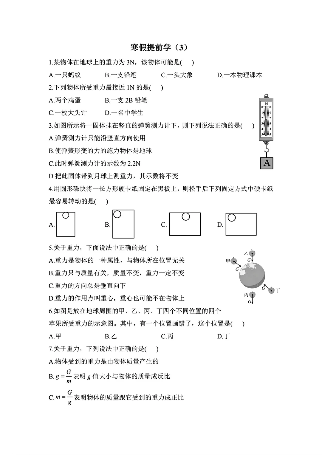 八年级物理寒假作业