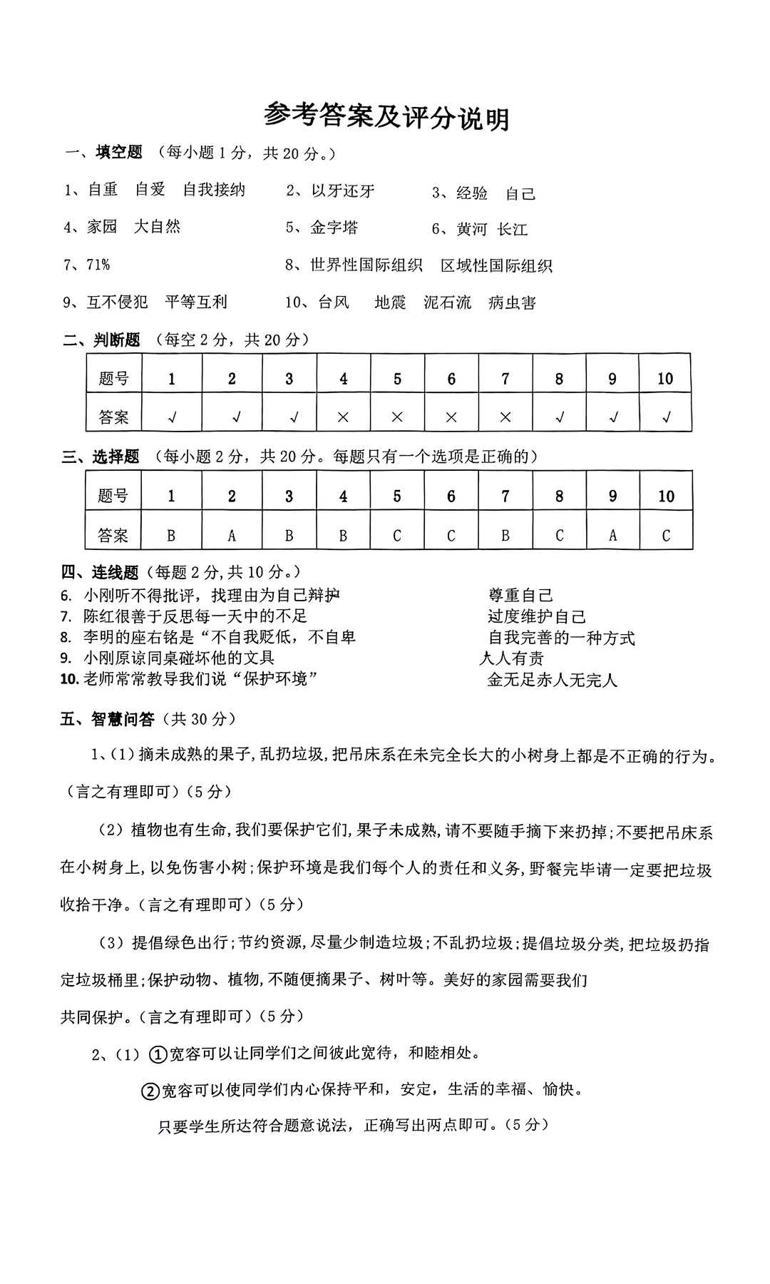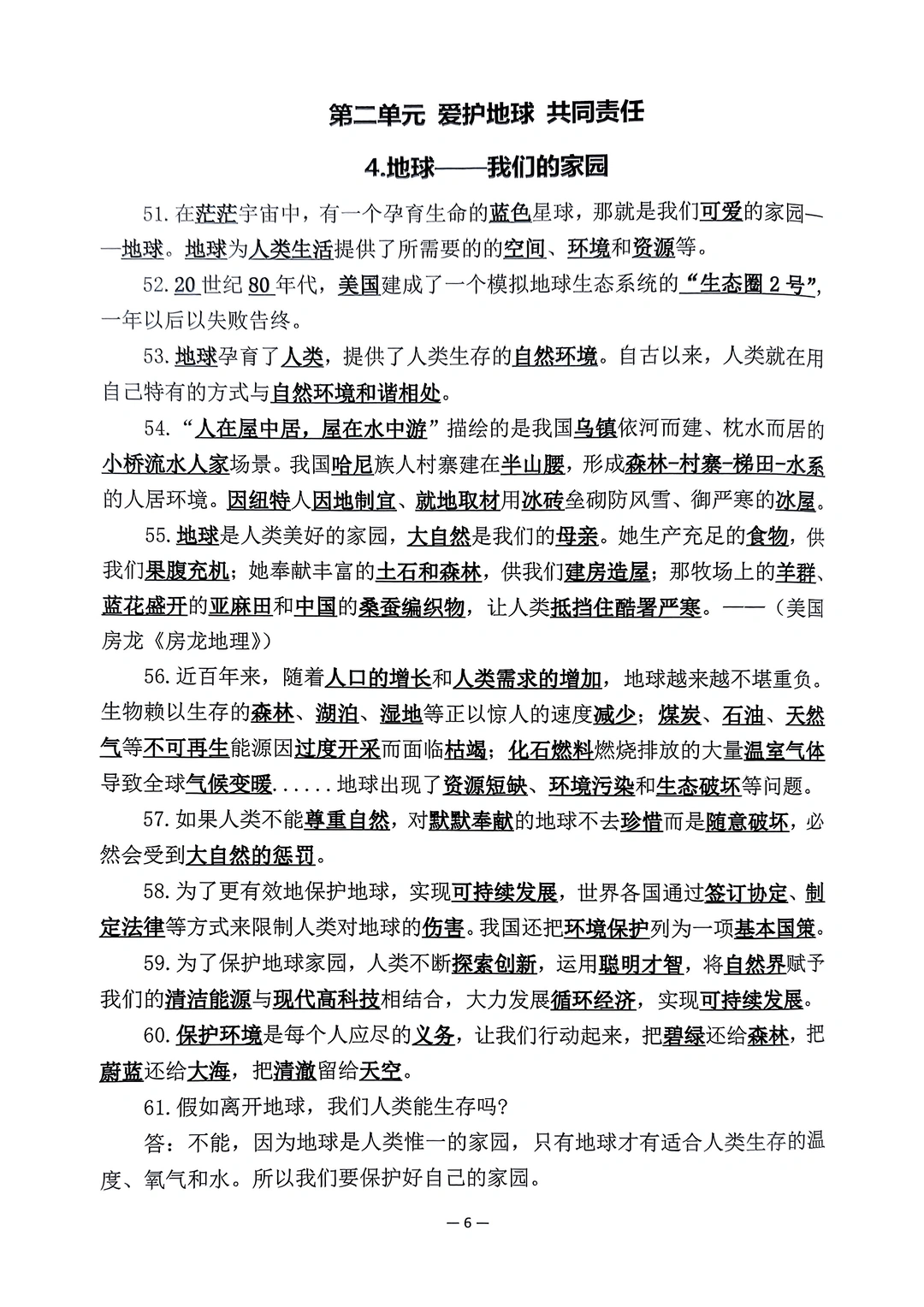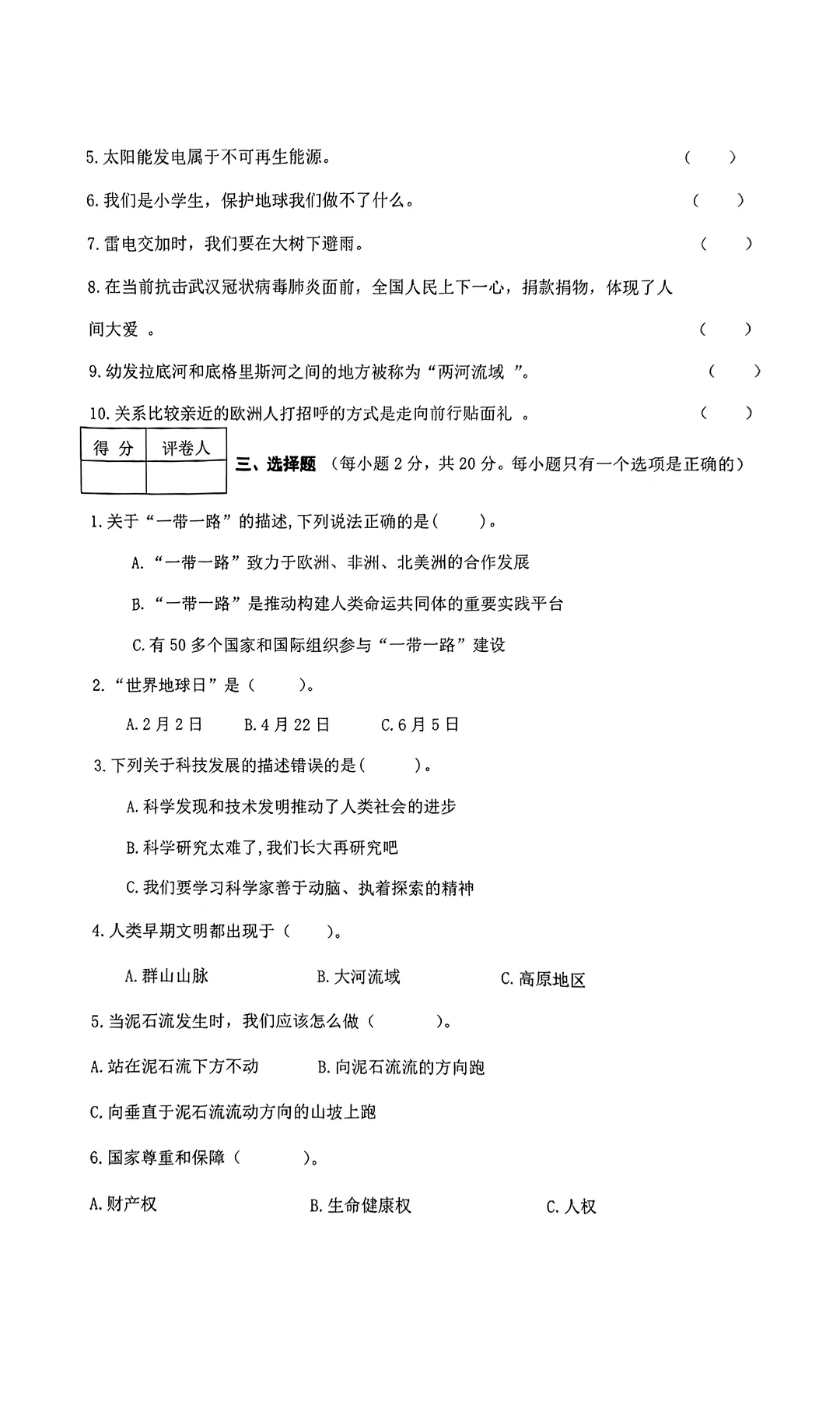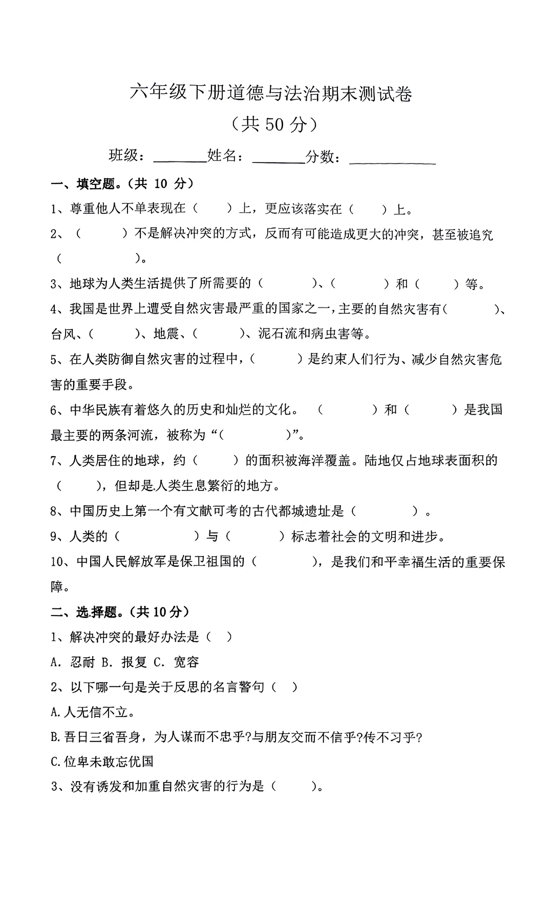 六年级下册道德与法治试卷与知识点汇总