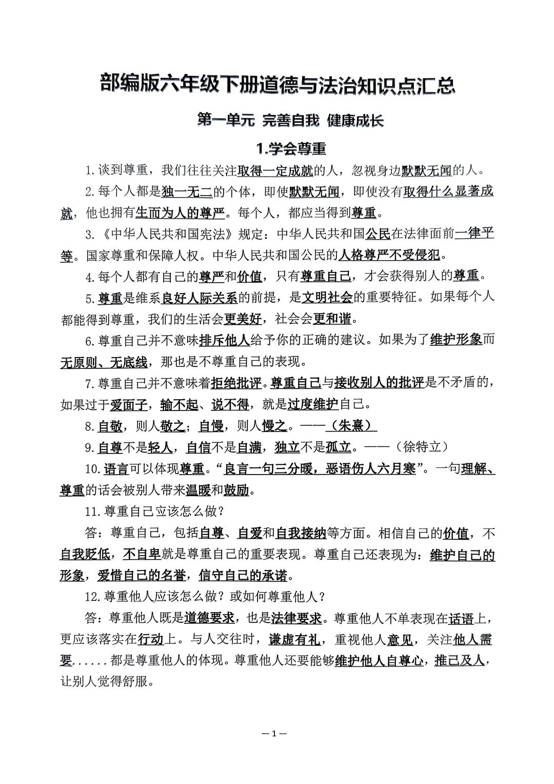 一份新得到的老师发下来的复习资料,试卷加背读资料共43页,pdf版,一份我也觉得不错的资料,六年级下册的道法是开卷考试,
