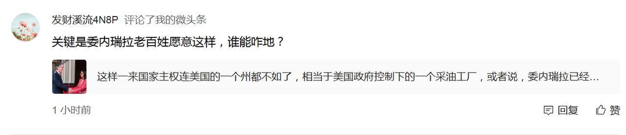 我发了一篇事关美国全面控制委内瑞拉石油的微头条(图一),看到有下面两条评论(图二