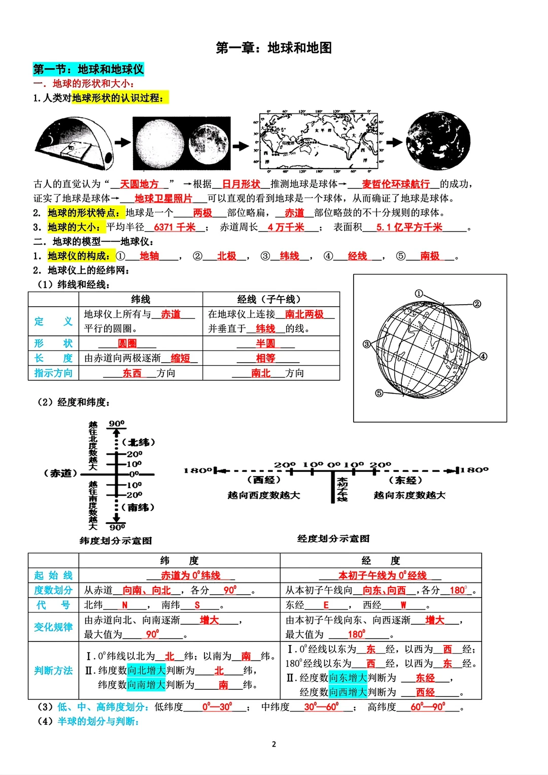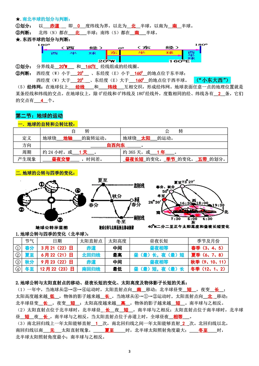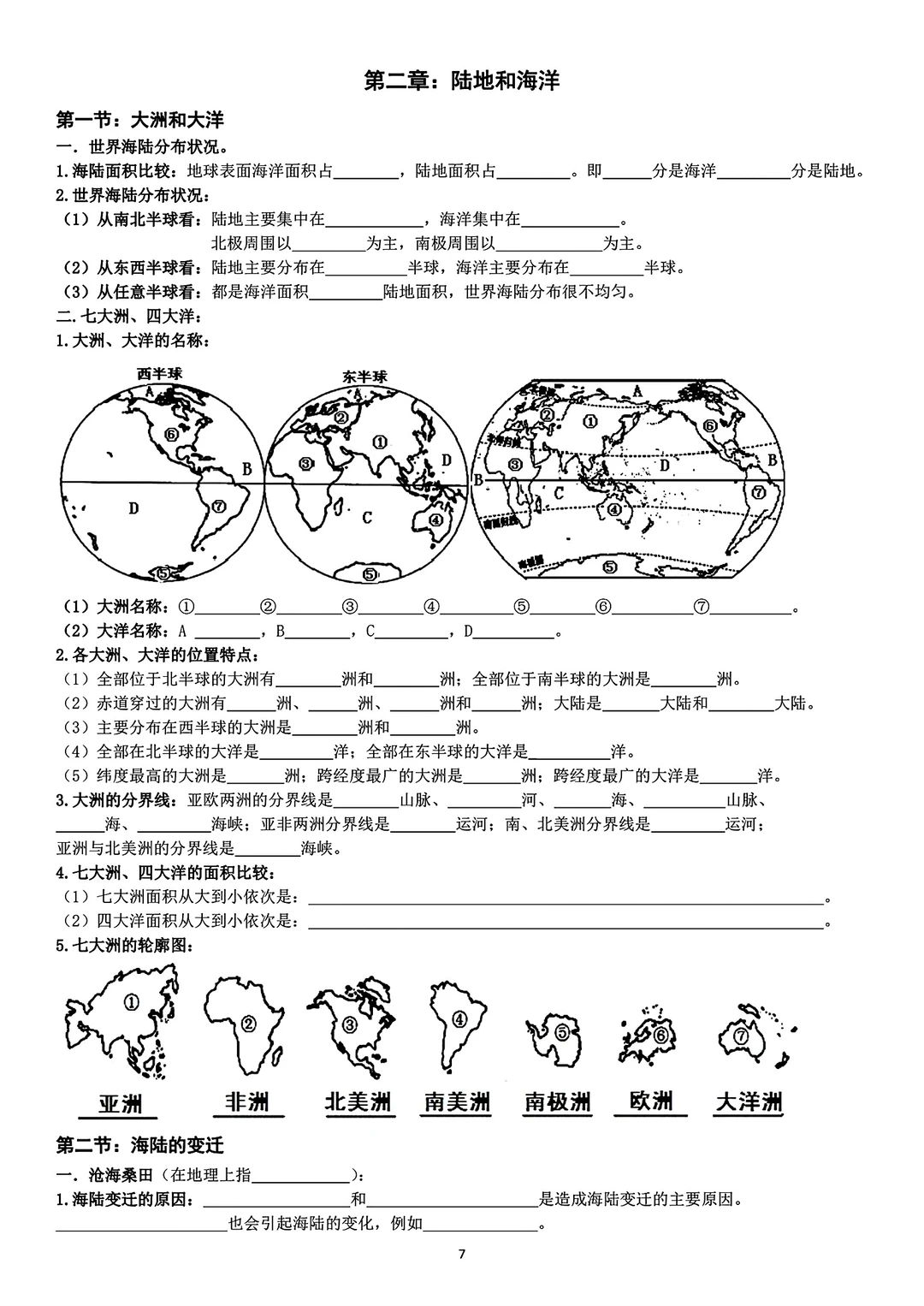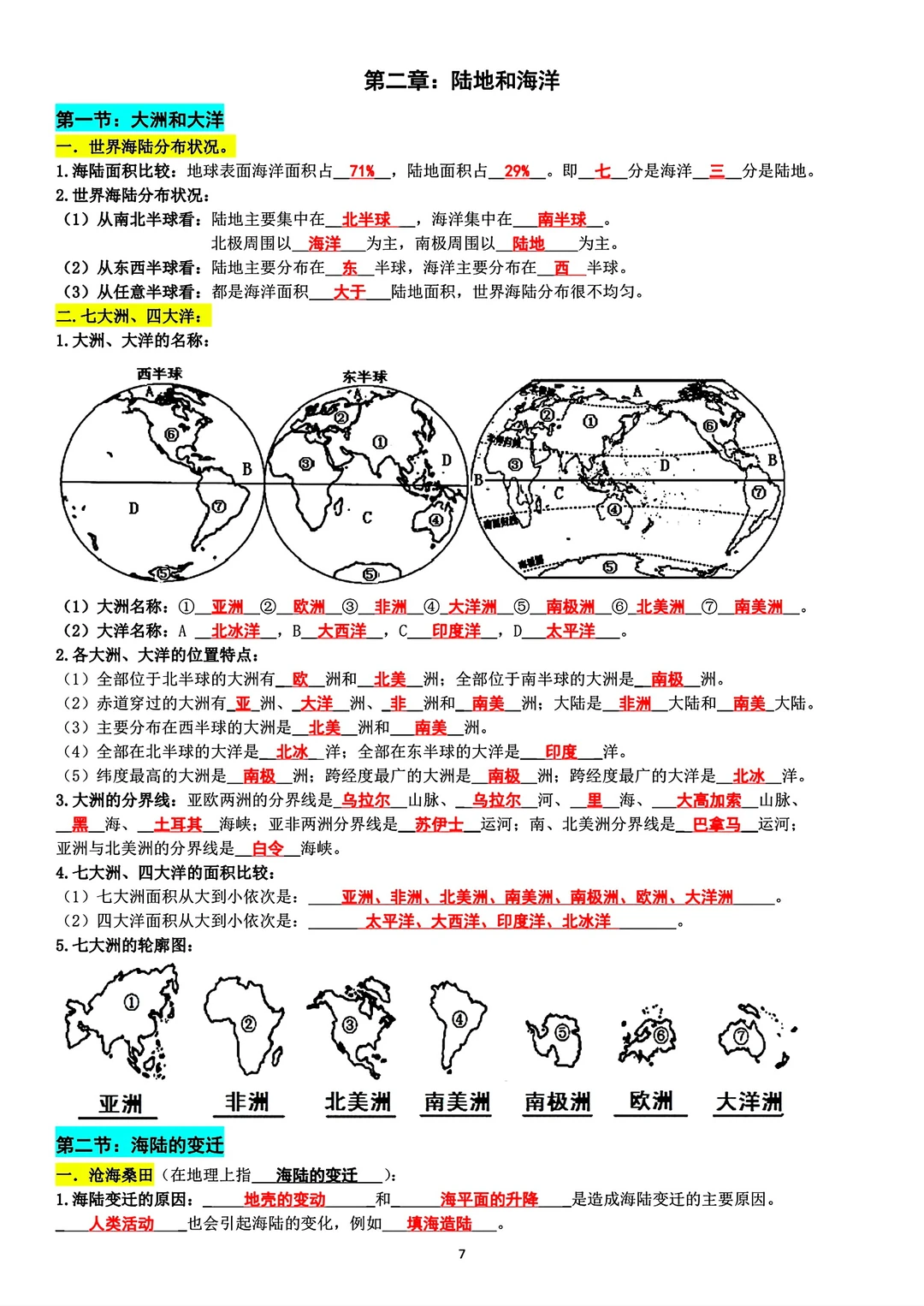 旧版七年级上册地理背记资料