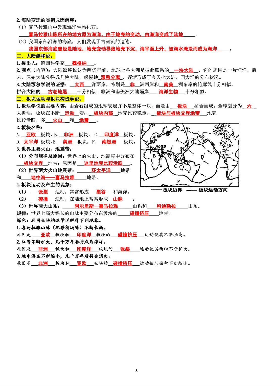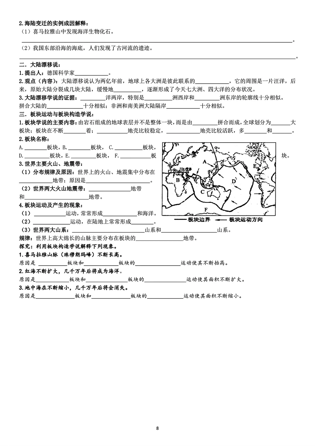 填空版加答案版共34页。 Pdf版,适合八年级生地会考复习用