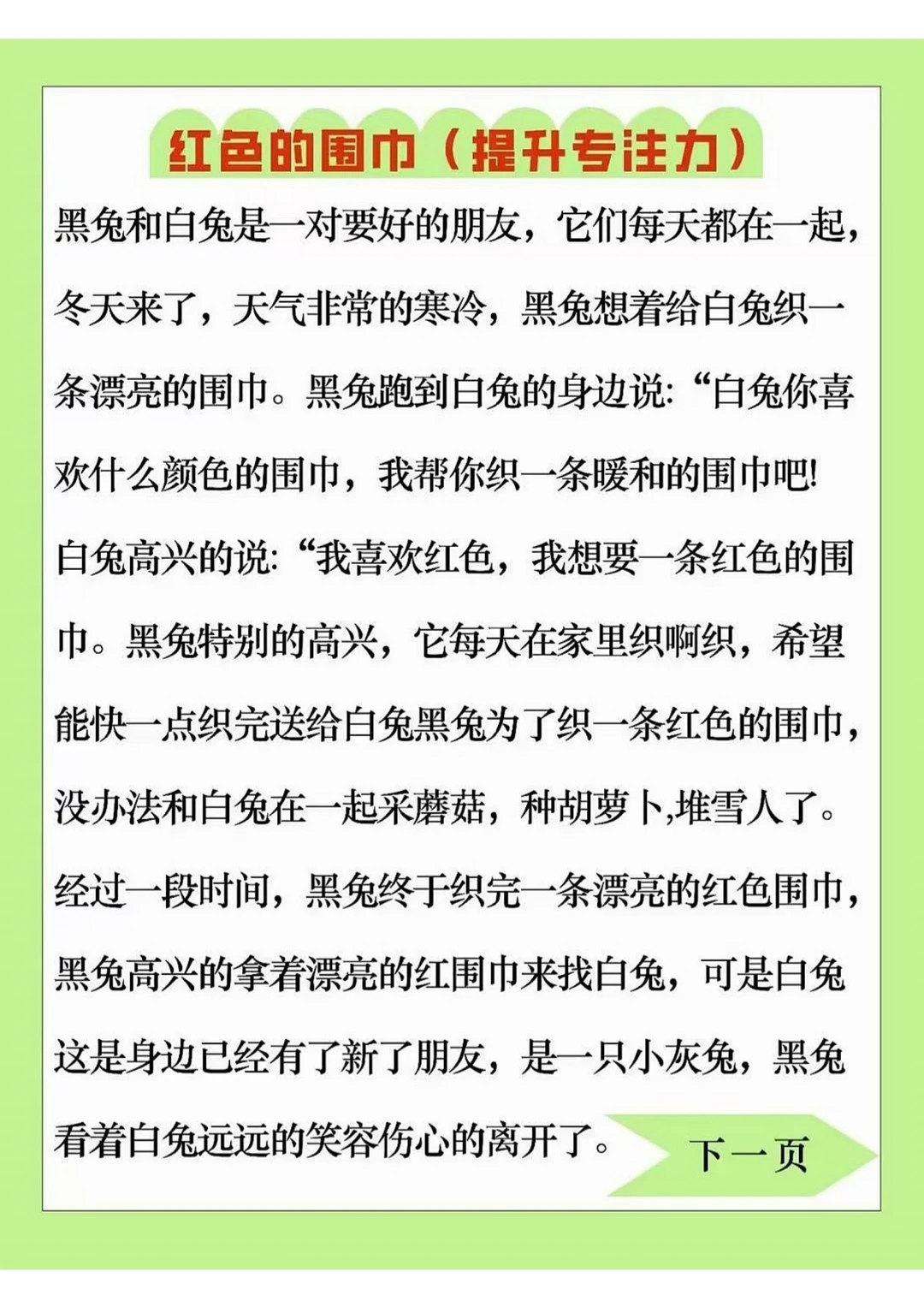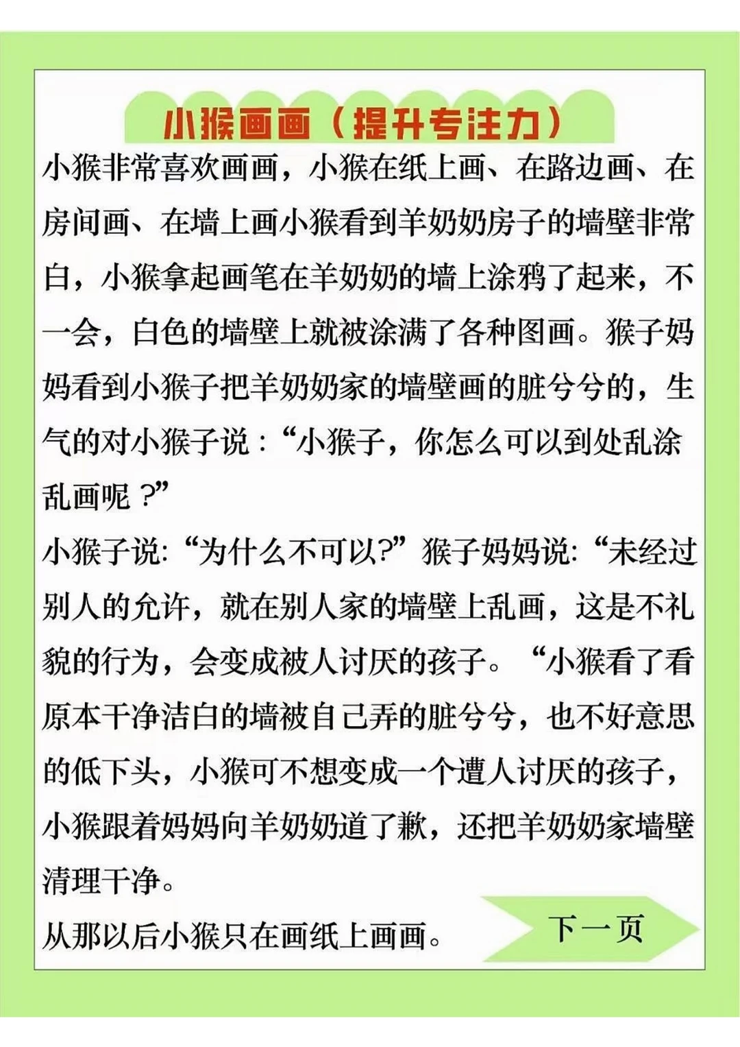 共303页pdf,可以4页打成一页a4纸打印,我认为这是一个很好的提升专注力的方法,当睡前故事给孩子讲,孩子专注的听后才能做题,这对孩子的思维也是一种锻炼,对孩子以后做阅读理解题也会有帮助。