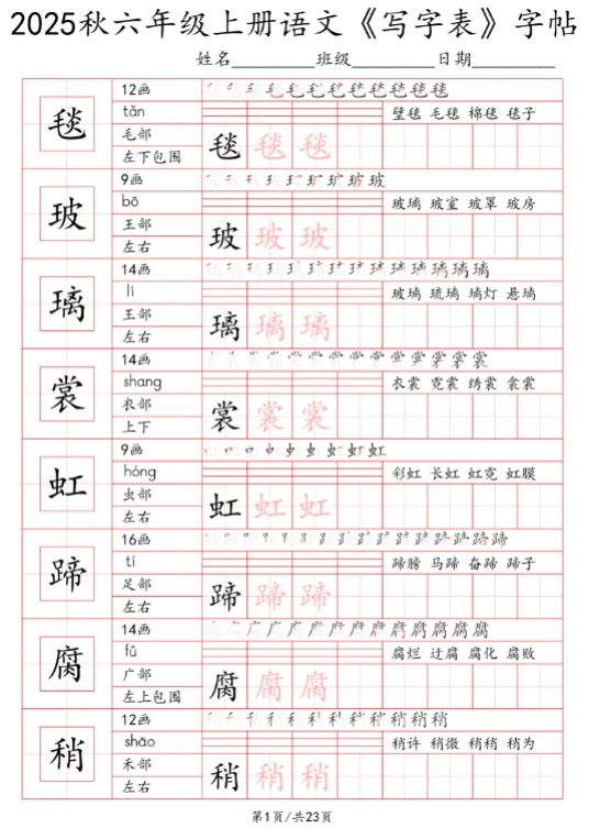 第2个图片里面提到的资料一起发送,一些适合暑假里提前搞一下的资料,这个背诵表与字帖是才发的暑假里的作业资料,背诵默写表只有8页,前4页是背诵的,后4页是默写的