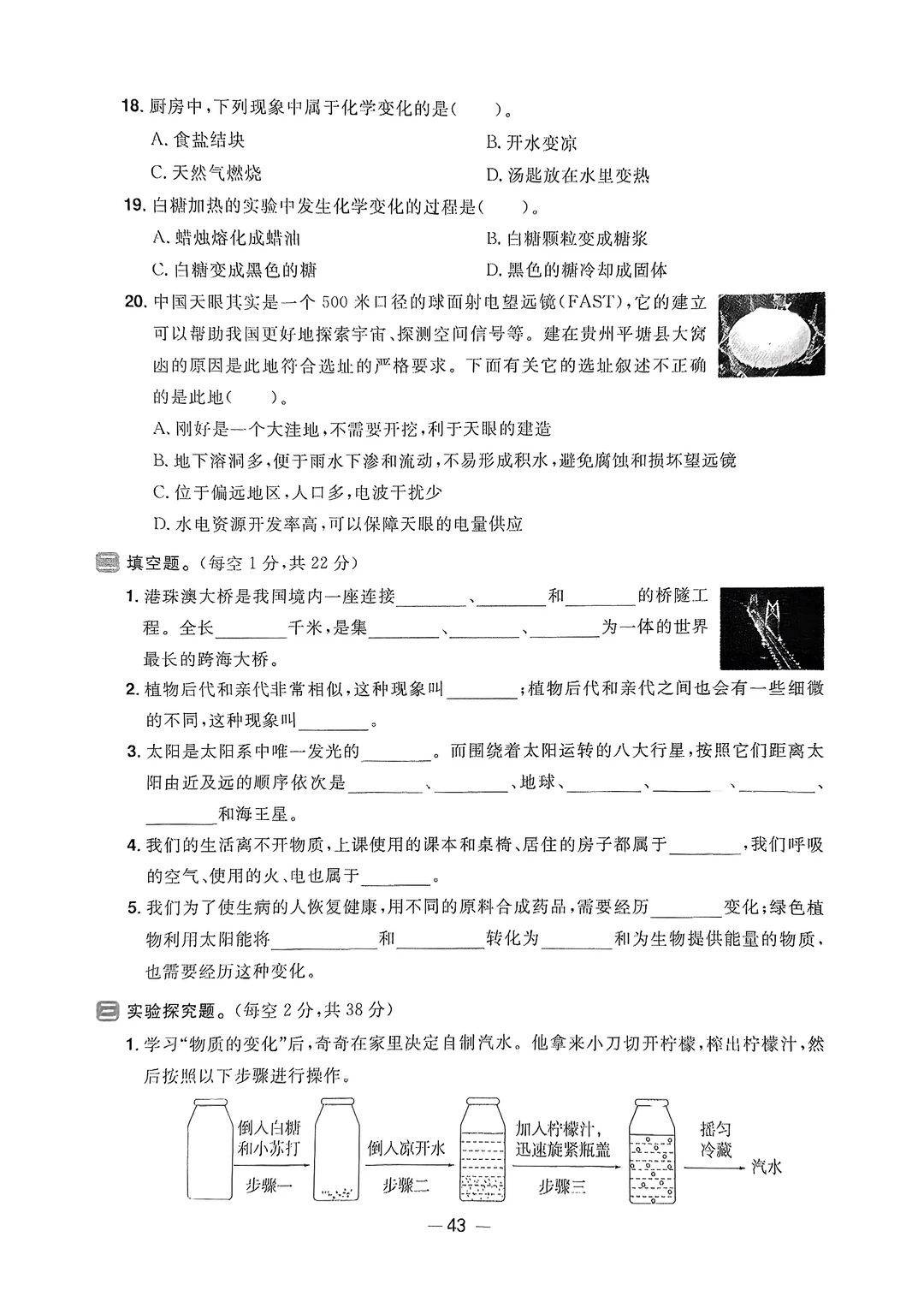 共46页pdf,前面24页是考点总结,后面5套试卷。带答案,教科版六年级下册科学全册考点总结与模拟试卷,两套资料合在了一起,最新的