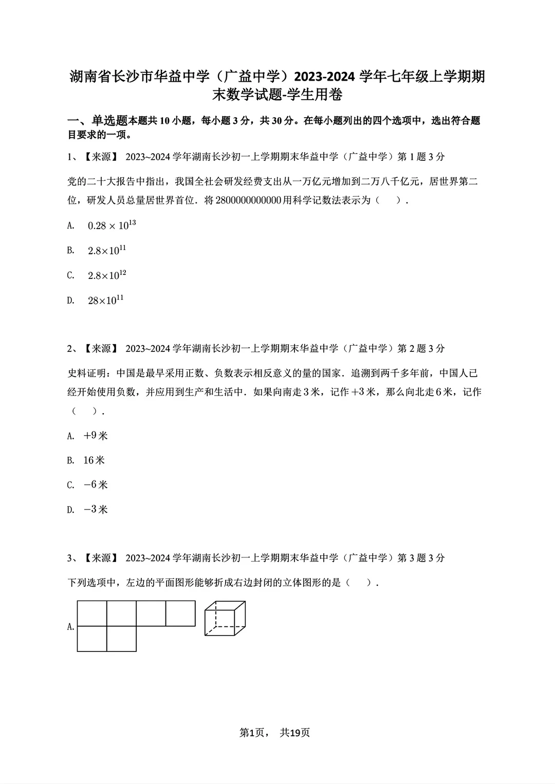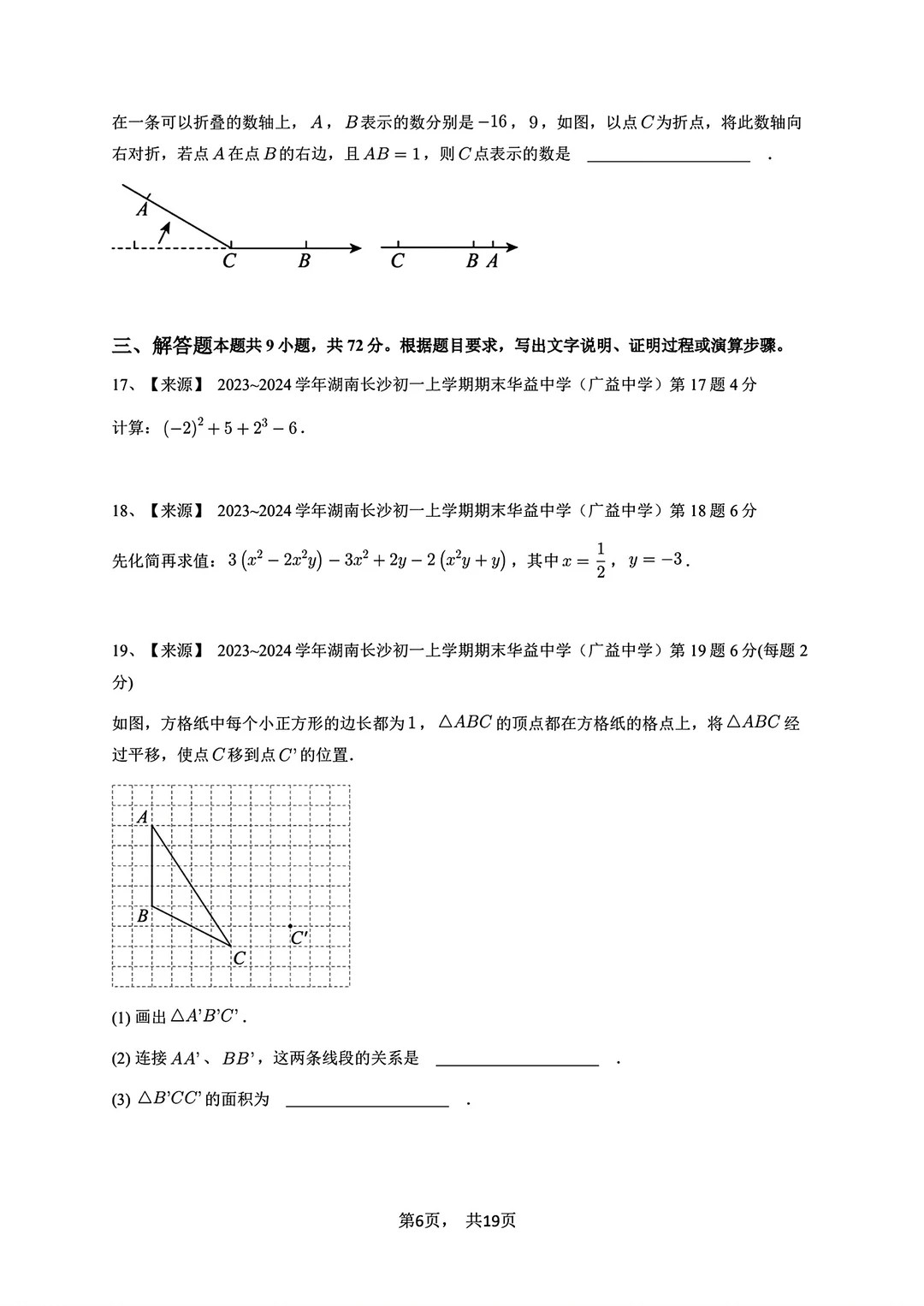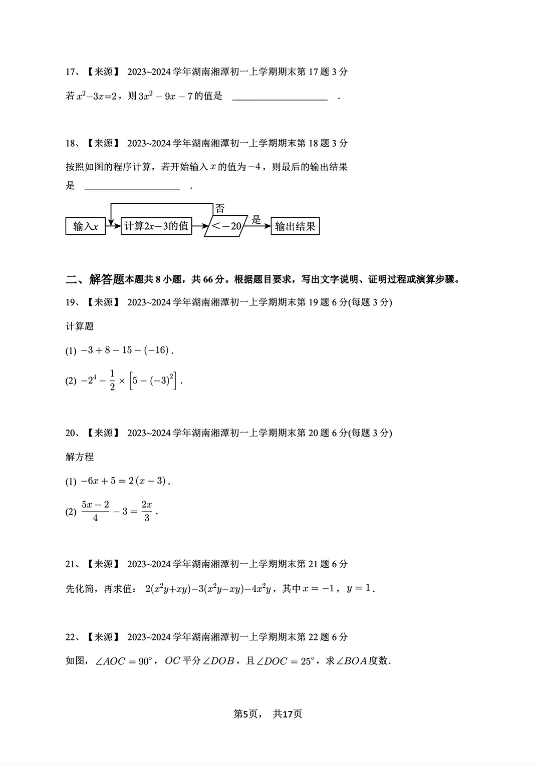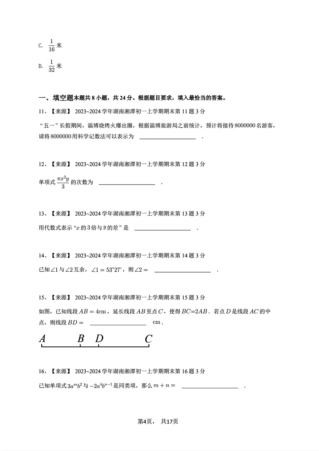 2023-2024七年级上册数学期末试卷