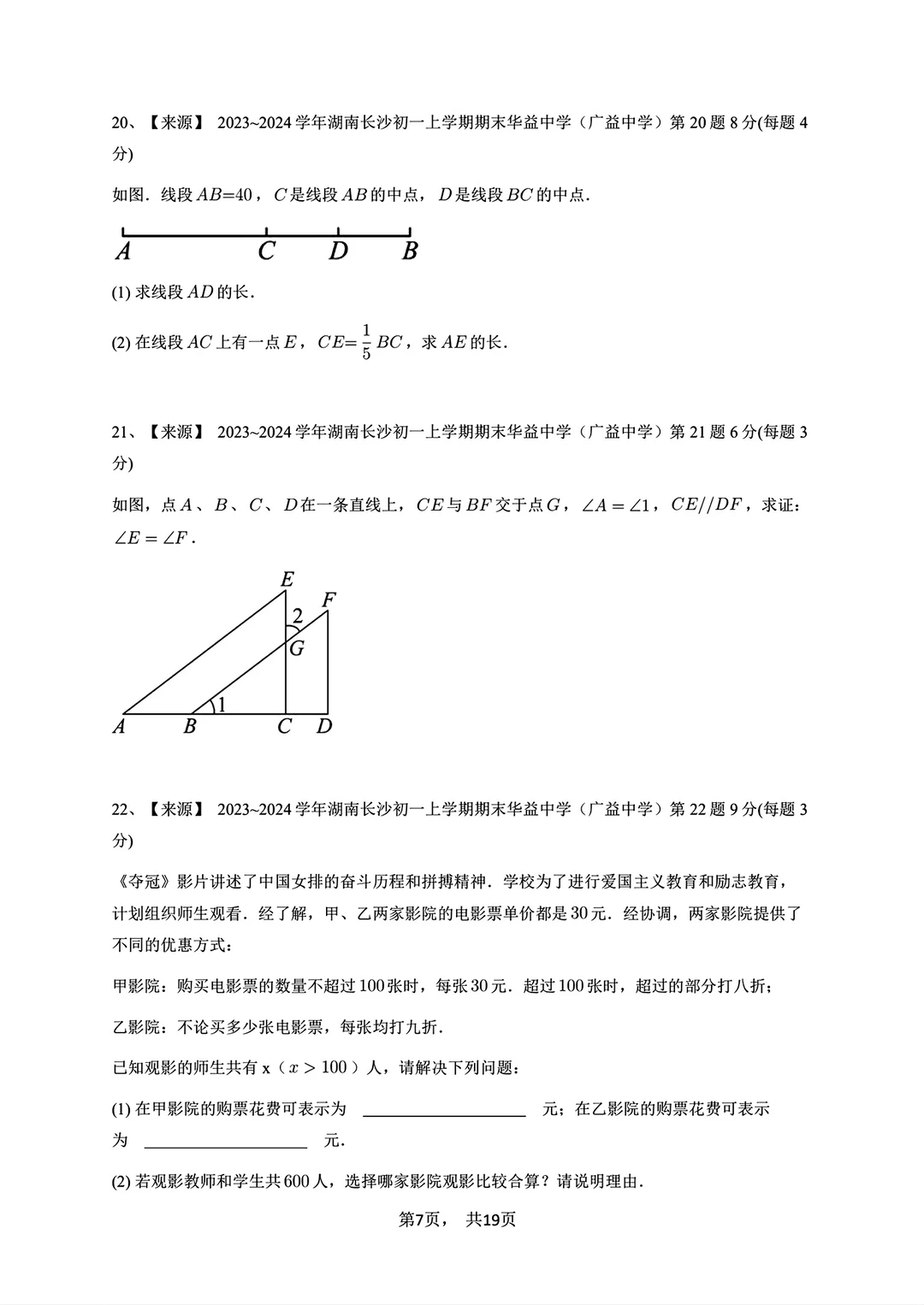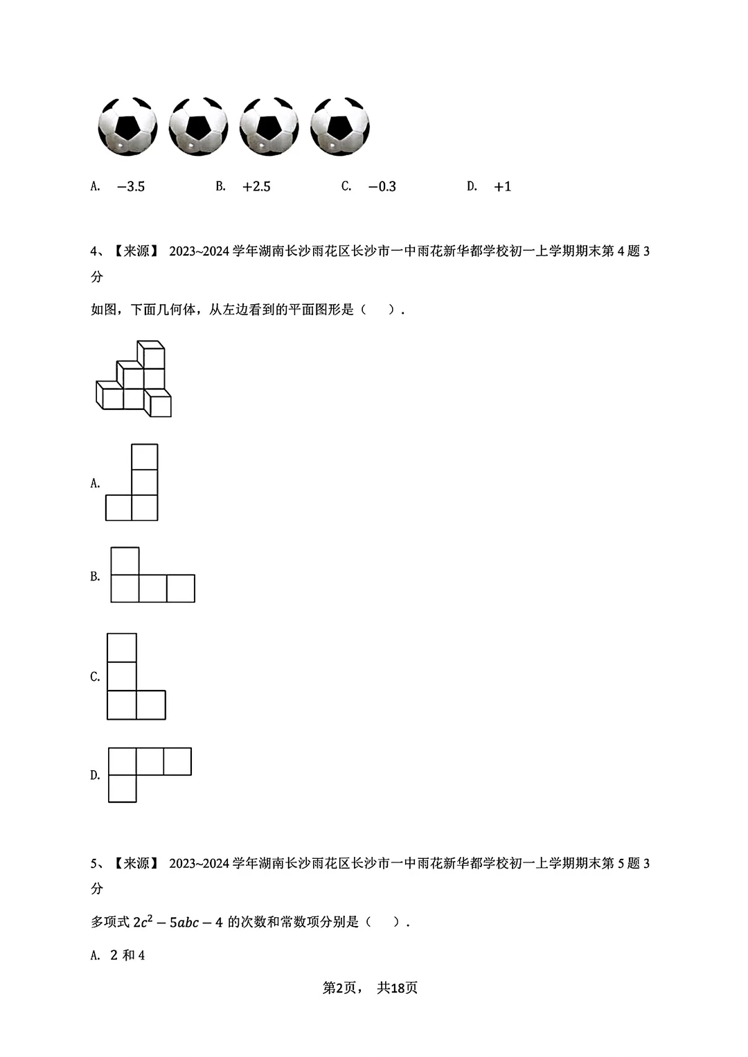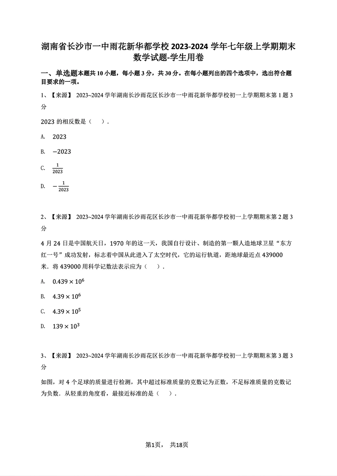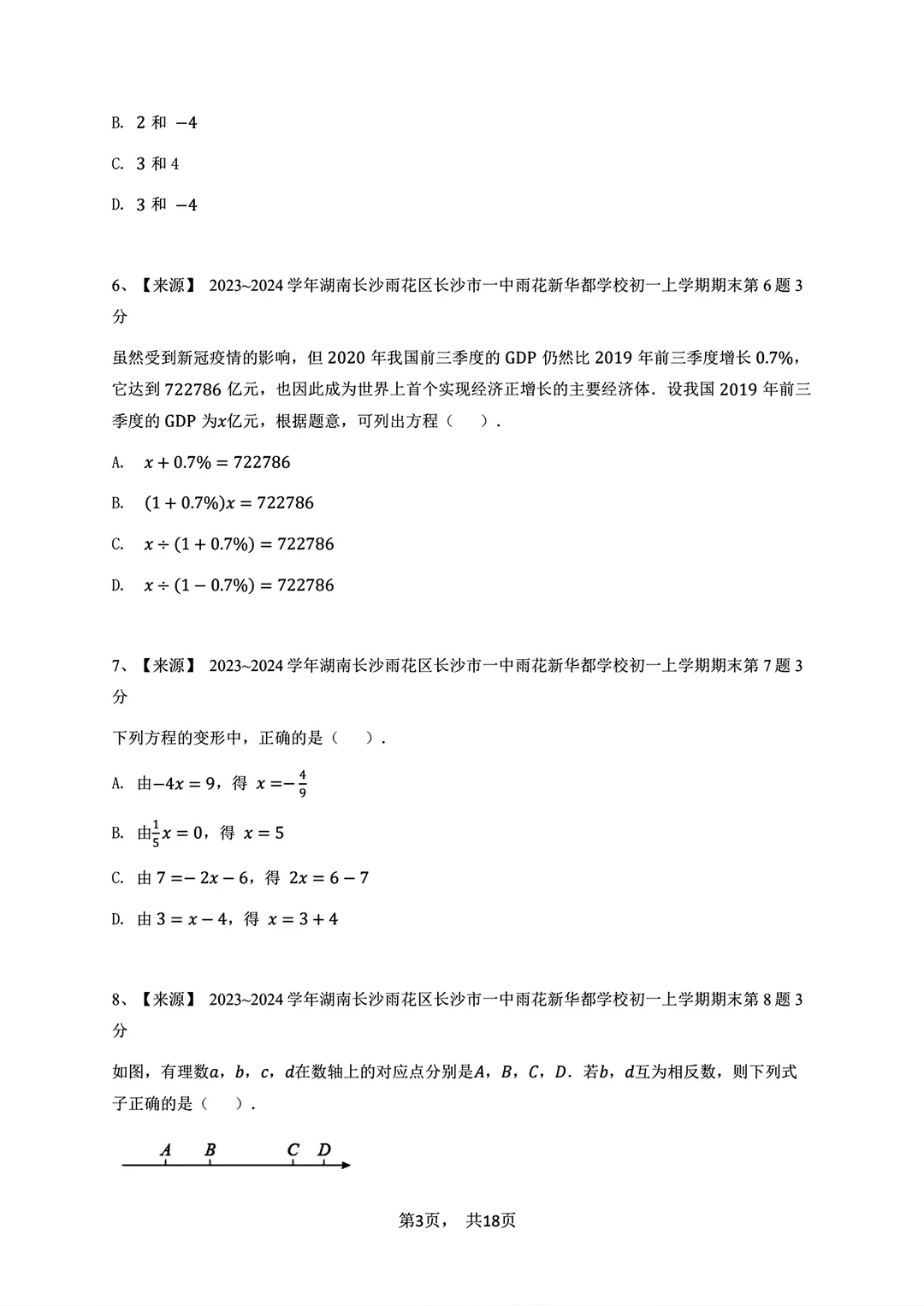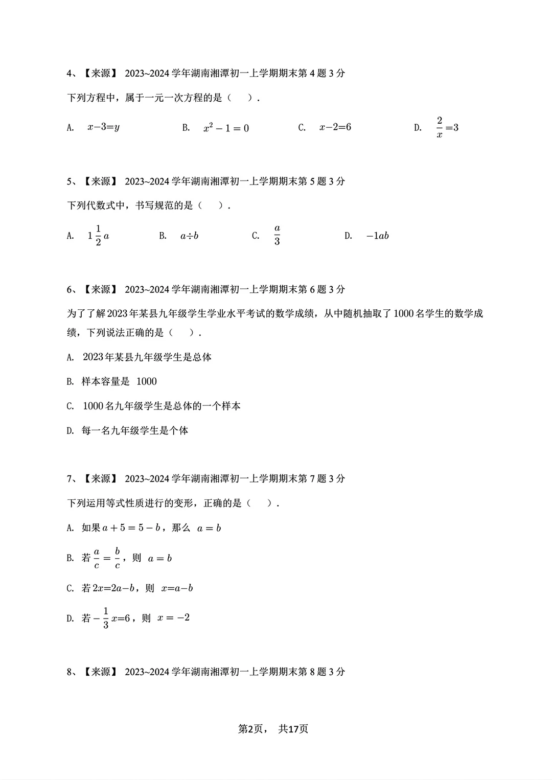 2023-2024七年级上册数学期末试卷