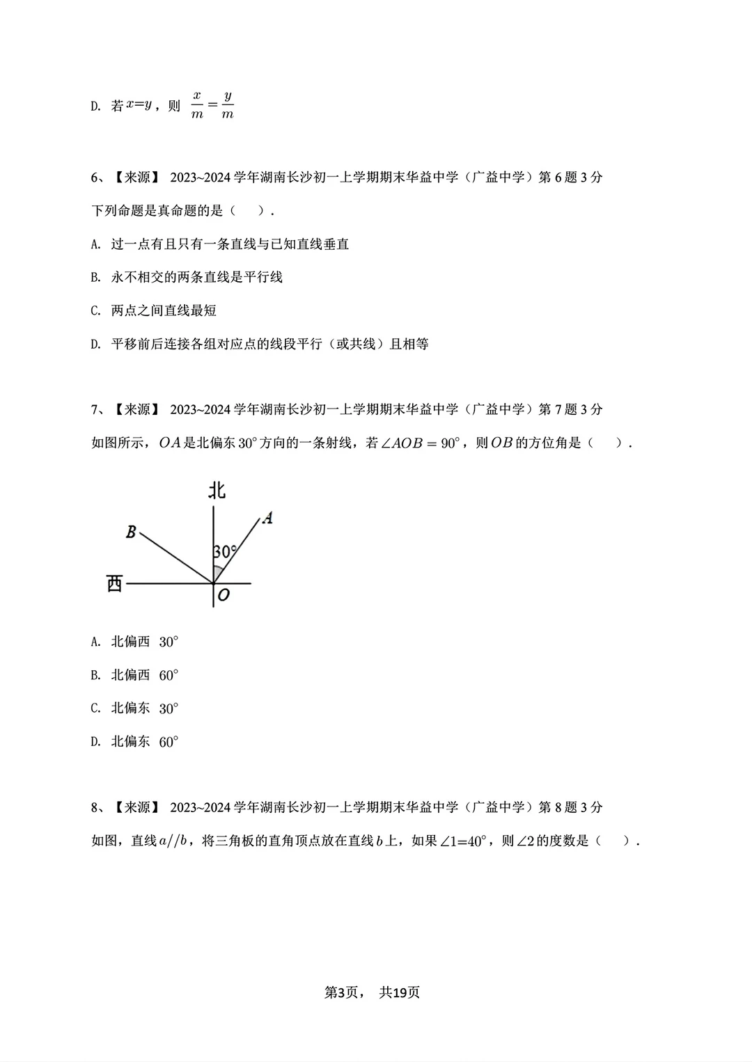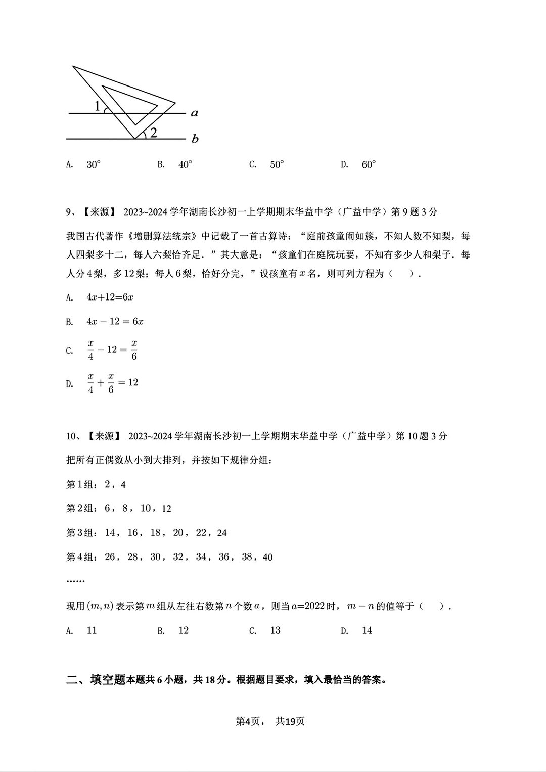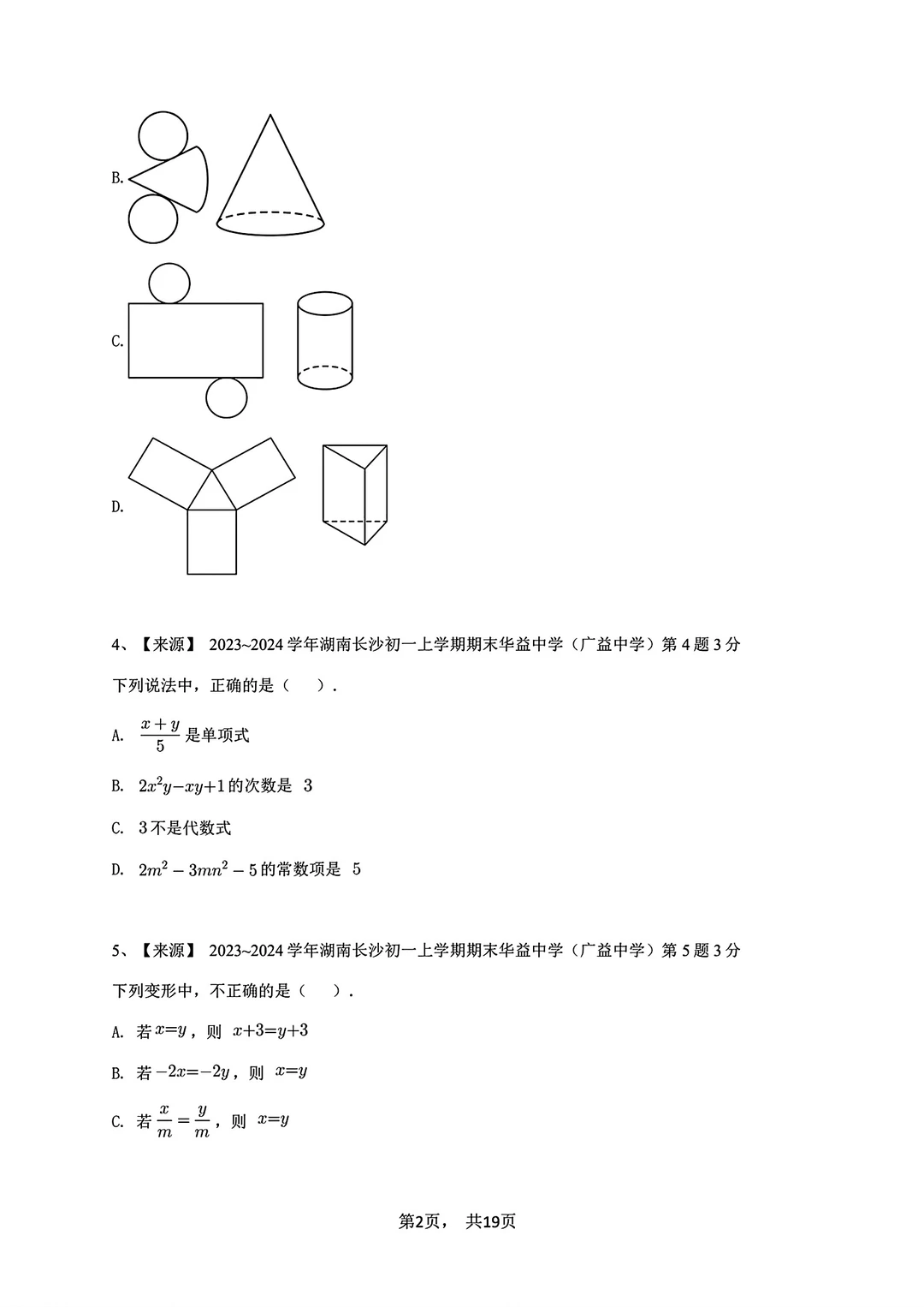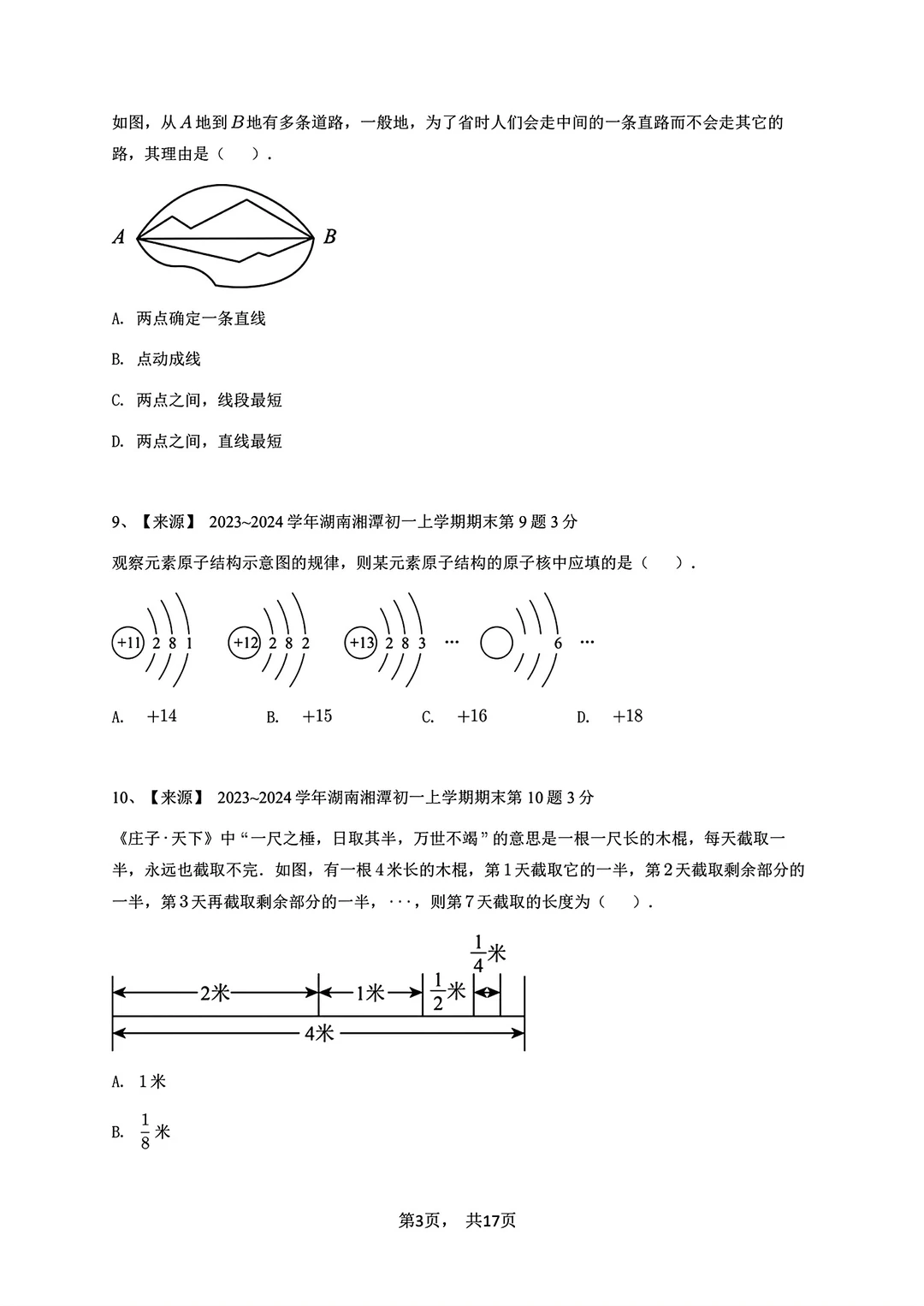 2023-2024七年级上册数学期末试卷