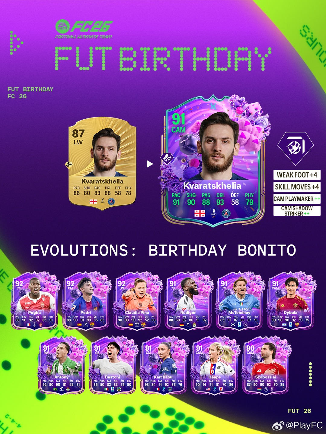 3月14日【新增进化】共 2 个1. 生日美丽足球|金币 125,000 & FC Points 8002. 传统中场球员|免费