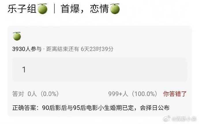 曝90影后和95小生婚期已定有瓜主爆料:90后影后与95后电影小生婚期定了,会择