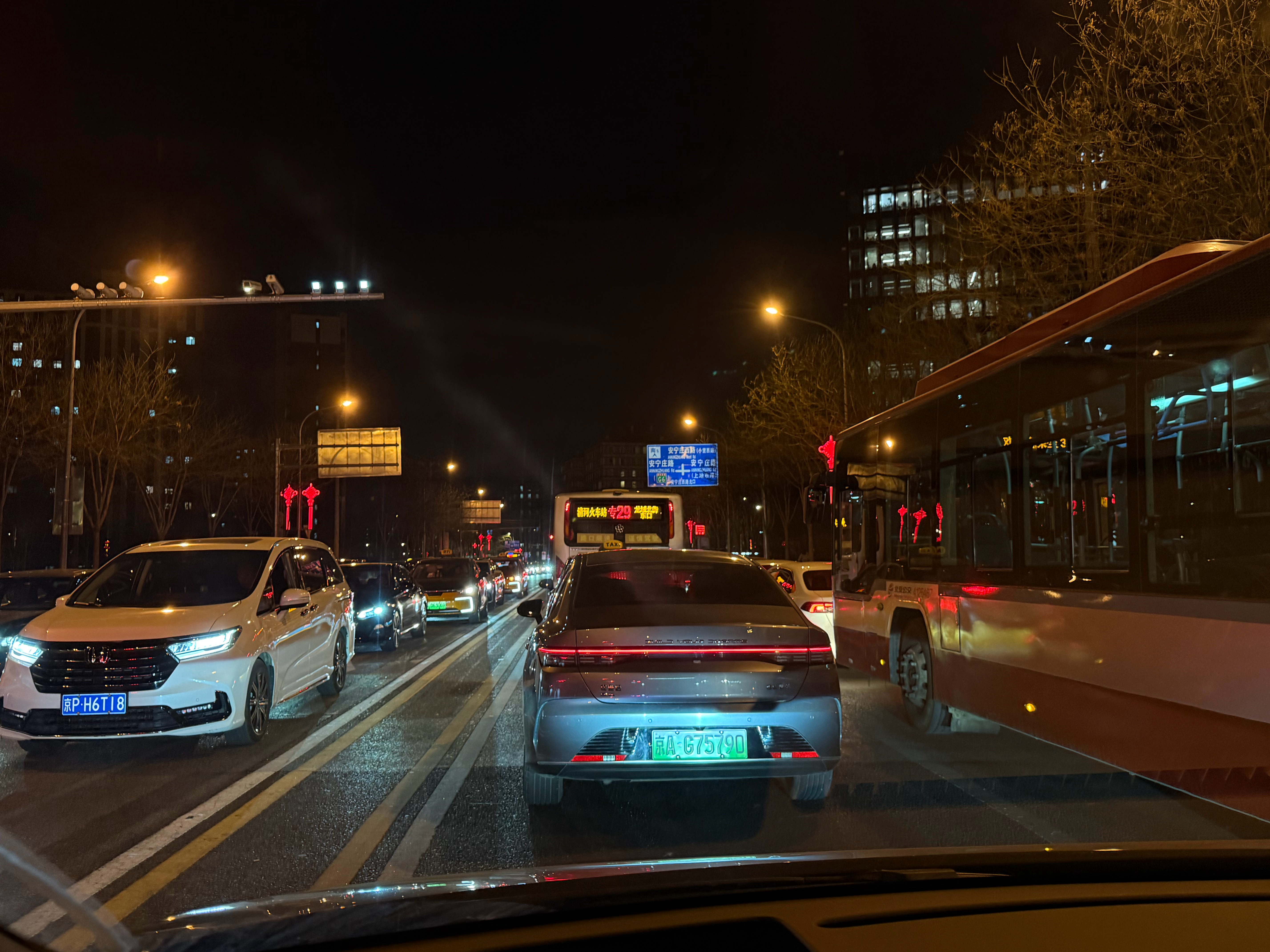 晚上10:30 西二旗的小米科技园灯火通明 门口超级堵车130m长的路硬生生走了10分钟